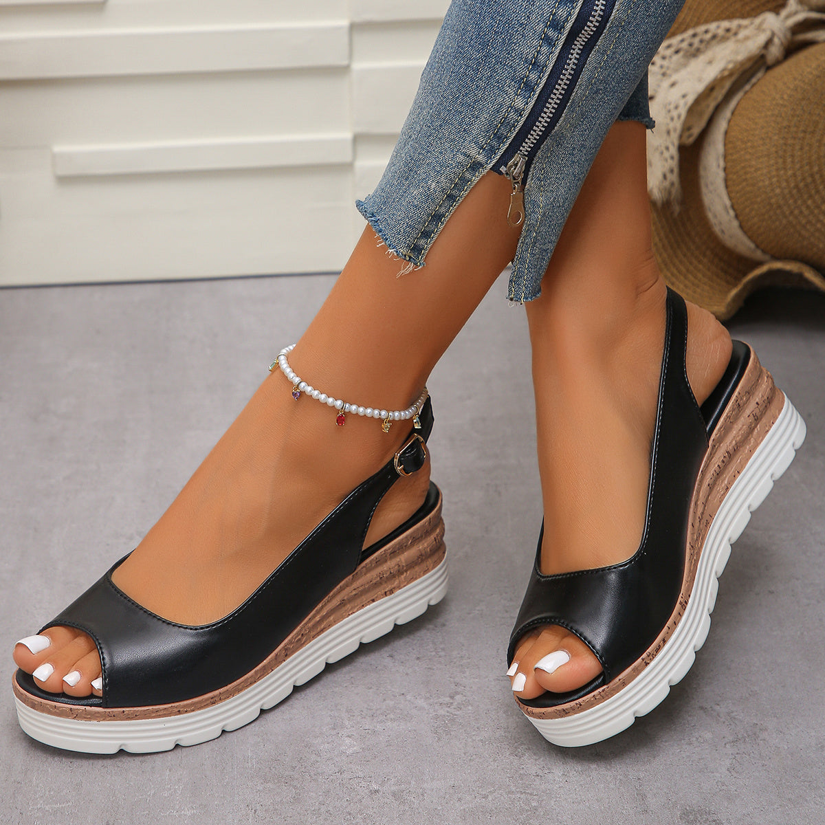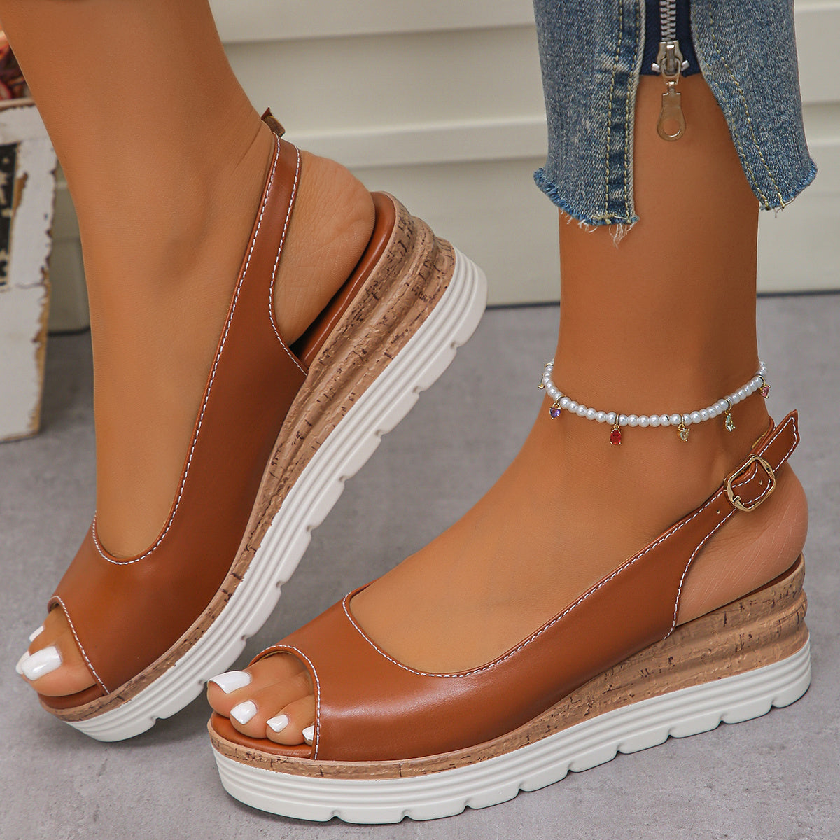 16 Sizes Available: Women's Thick-Soled Sandals, High Quality Platform Summer Fashion Slip-On Wedge Heels with Fish Mouth Design