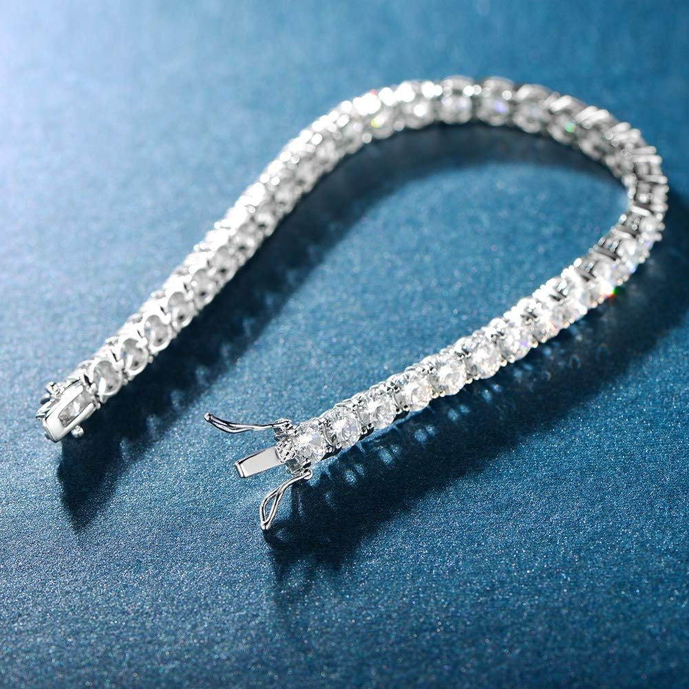 18k White Gold Plated CZ Tennis Bracelet, 4MM Cubic Zirconia Charm Bracelet for Women Men