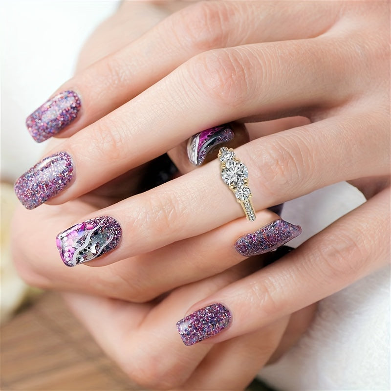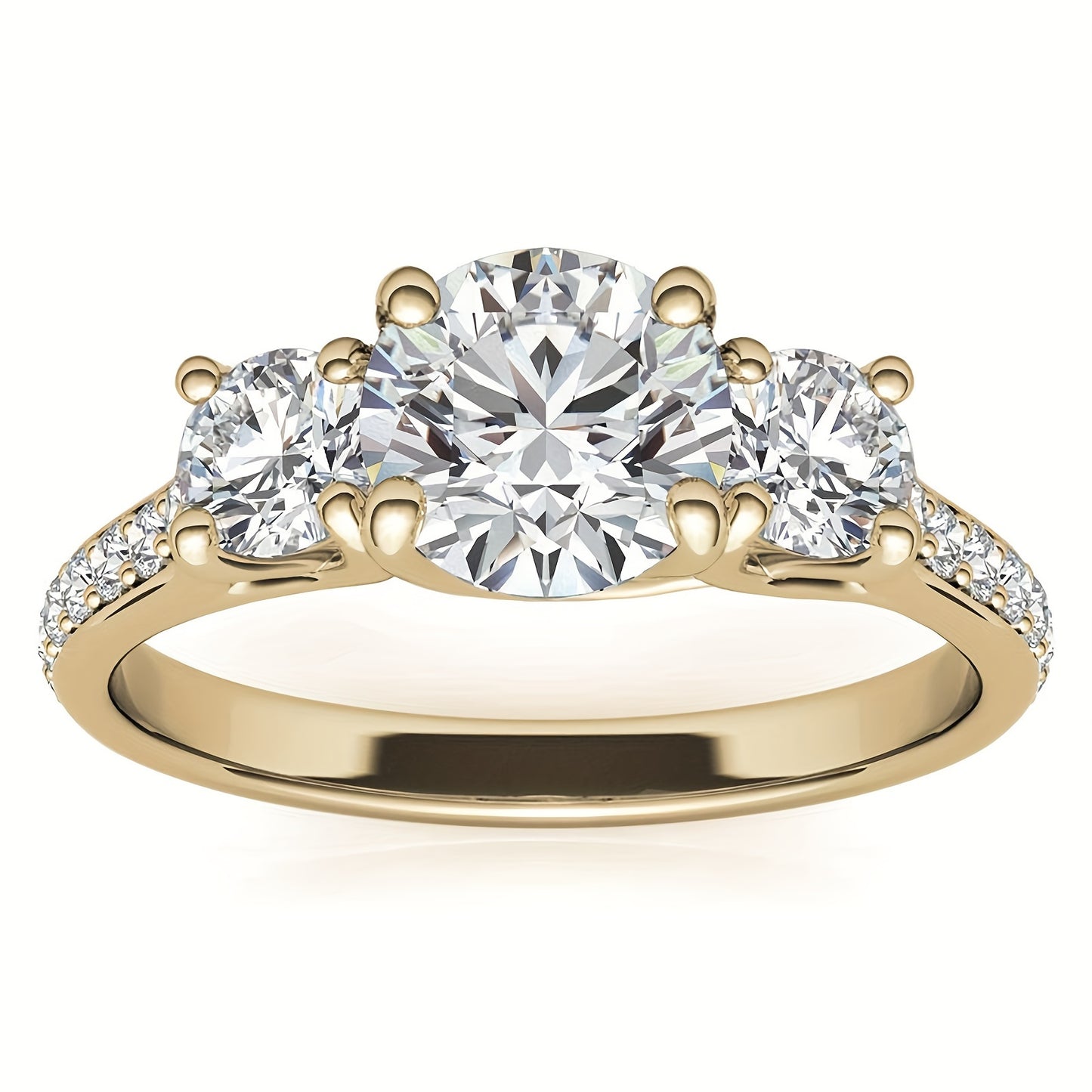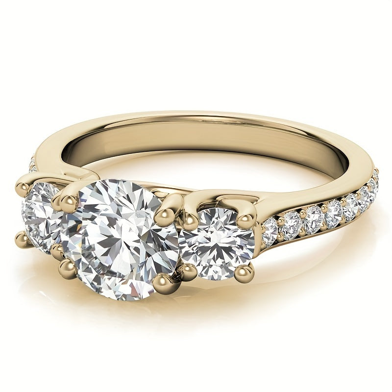 1pc Elegant 3-Stone Moissanite Engagement Ring for Women, 14K Golden Plated 925 Silver, Round Synthetic Stones, 4-Prong Setting, Ideal for Wedding & Valentine'S Day Gift