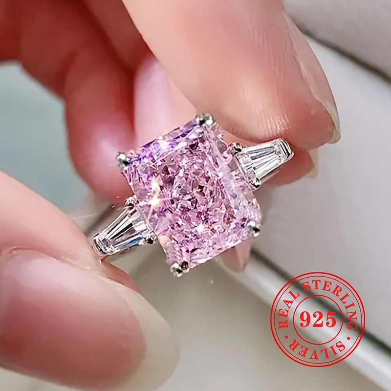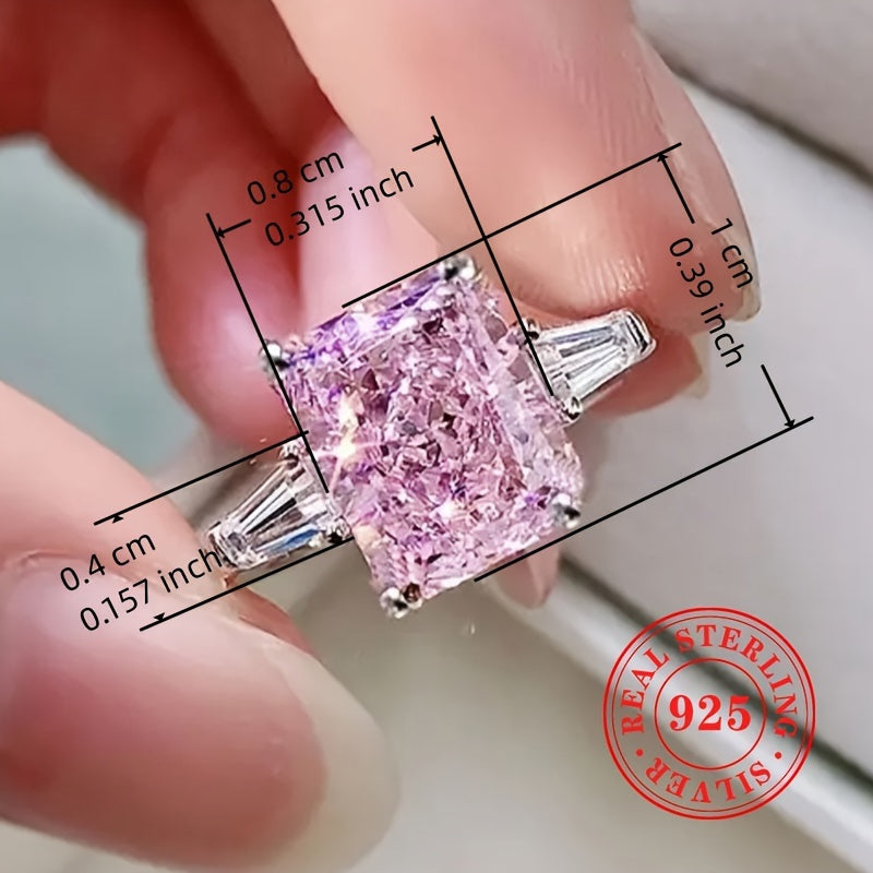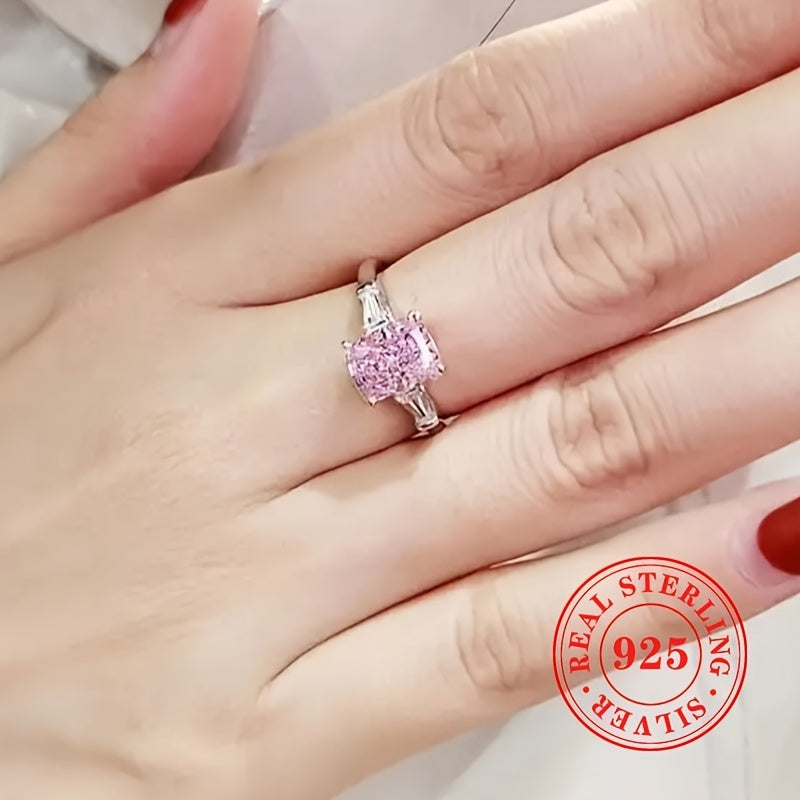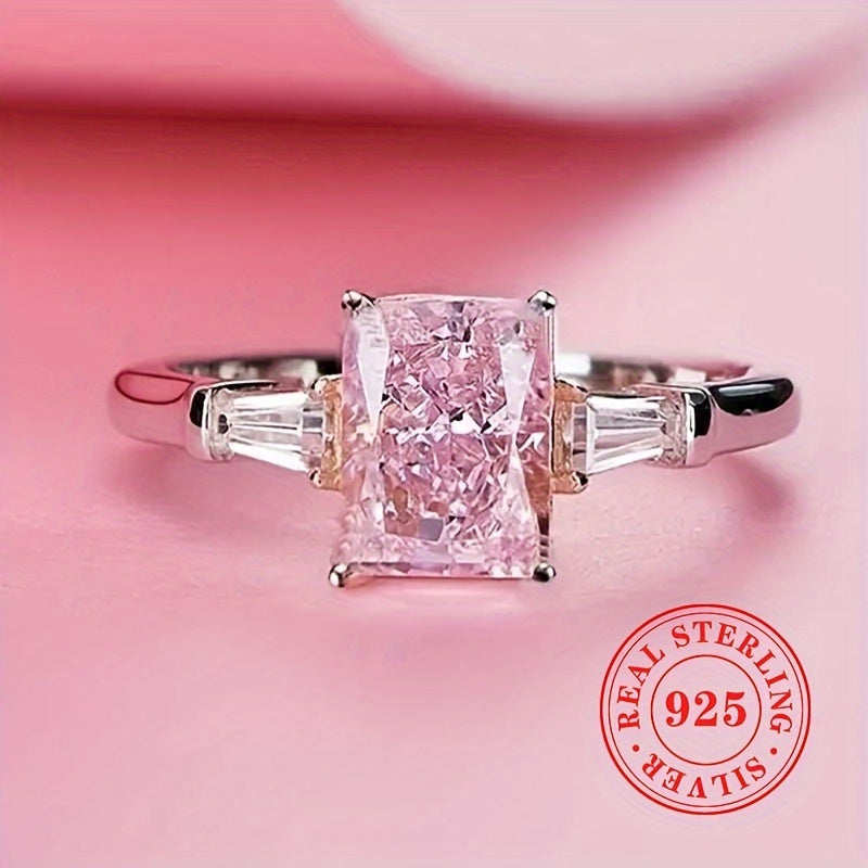 1pc High-Quality S925 Sterling Silver Birthstone Ring - Vibrant Artificial Pinkish Synthetic Gemstone, Sleek Band Design