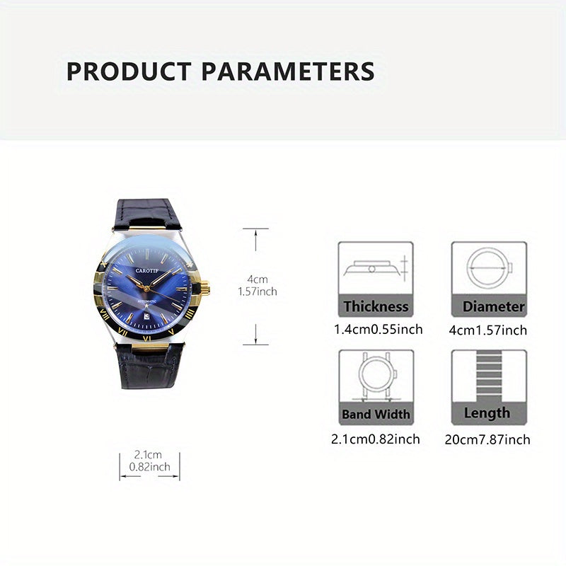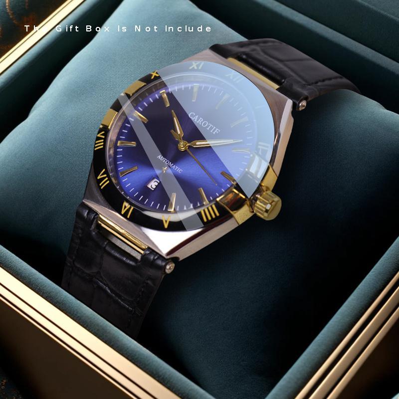 1pc Men's Black Blue Roman Scale Calendar Fully Automatic Mechanical Watch