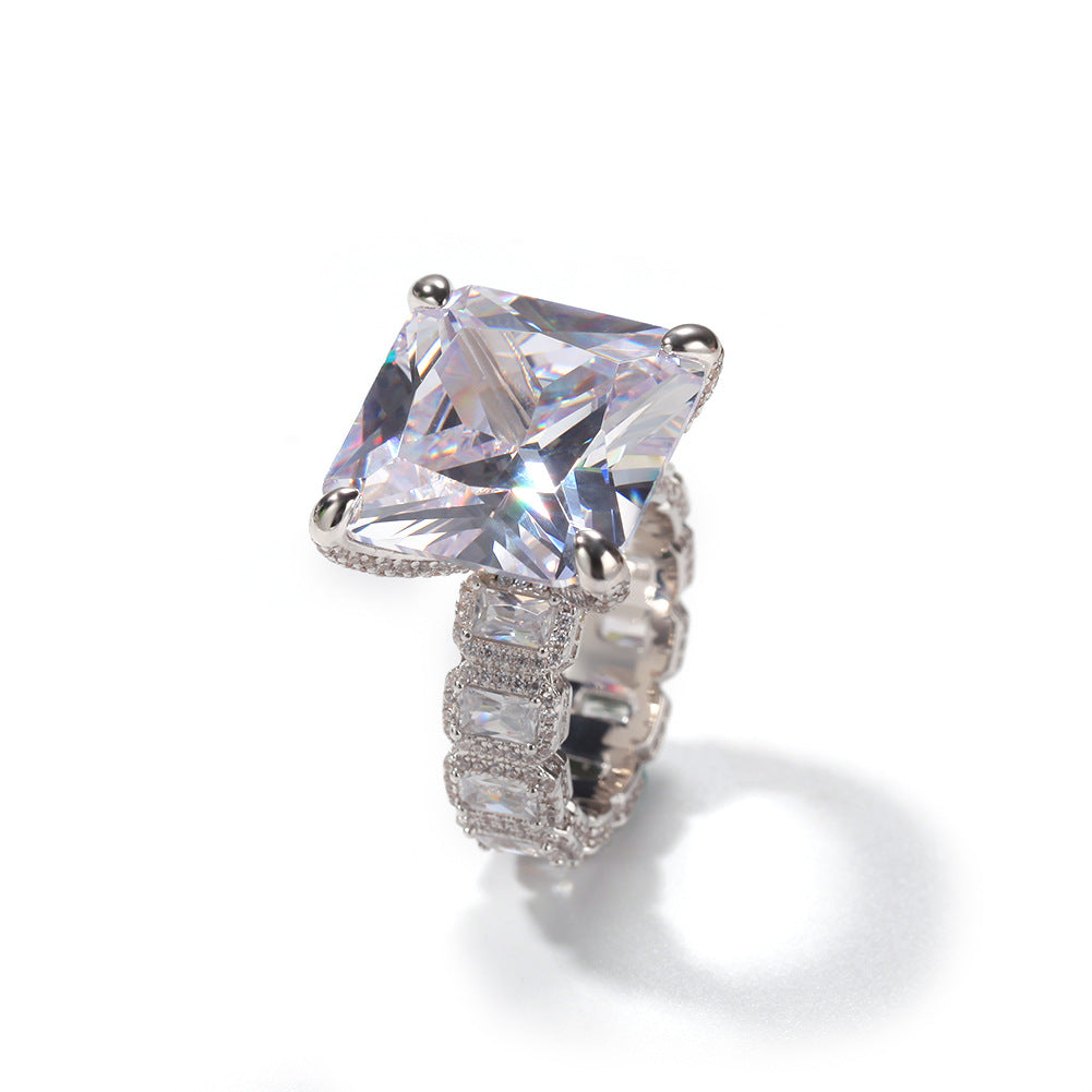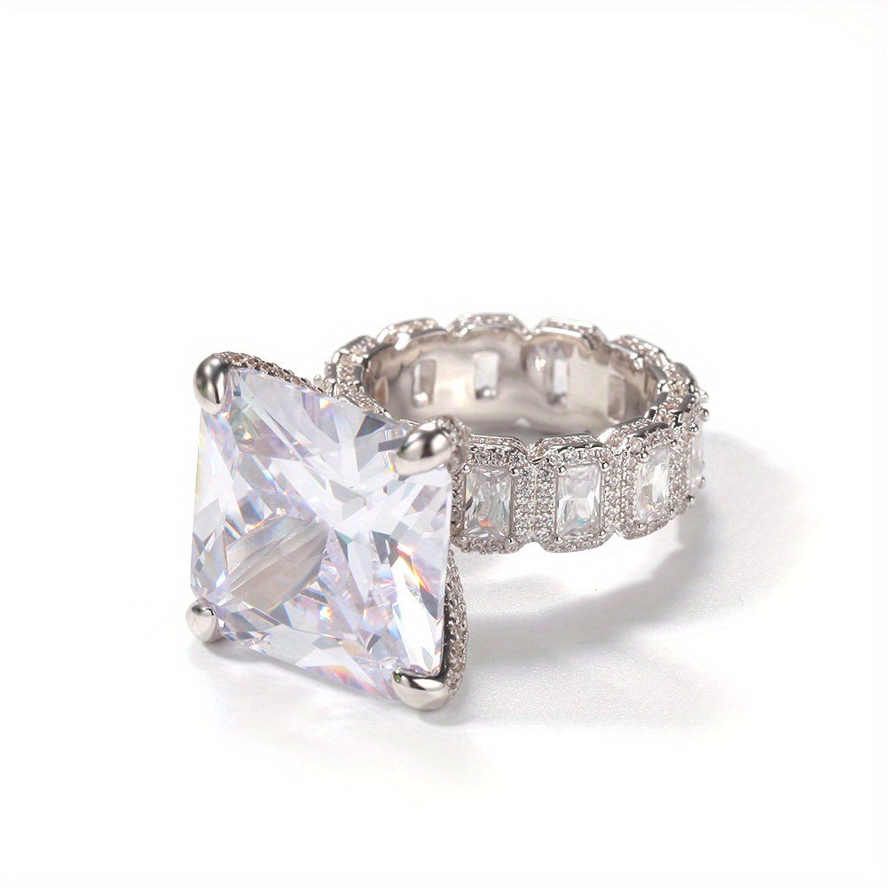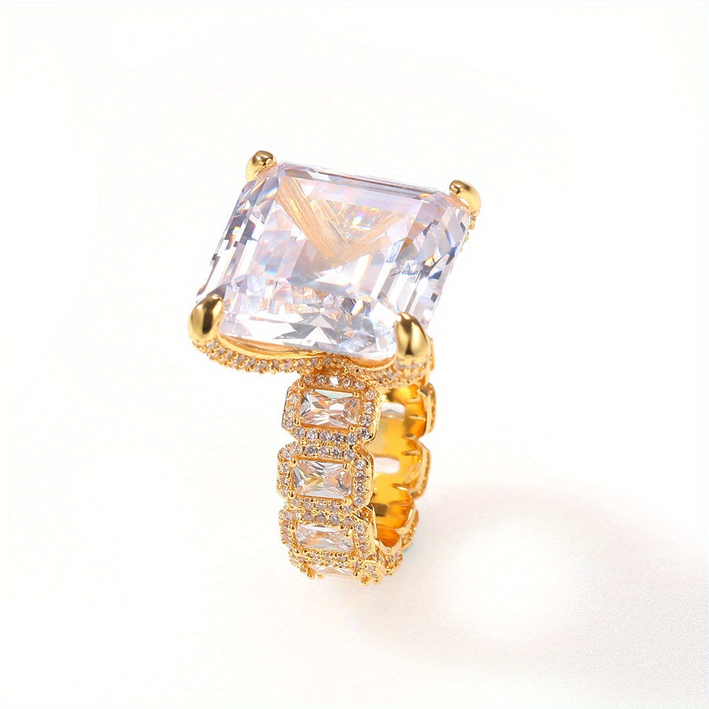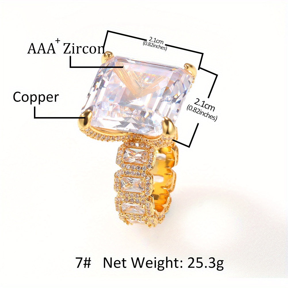 1pc Men's Bohemian Luxury Golden-Plated Synthetic Zirconia Ring - Square-Cut Center Stone with -Accented Band, Retro Hip-Hop Style Jewelry for Casual & Formal Wear, Durable Fashion Accessory