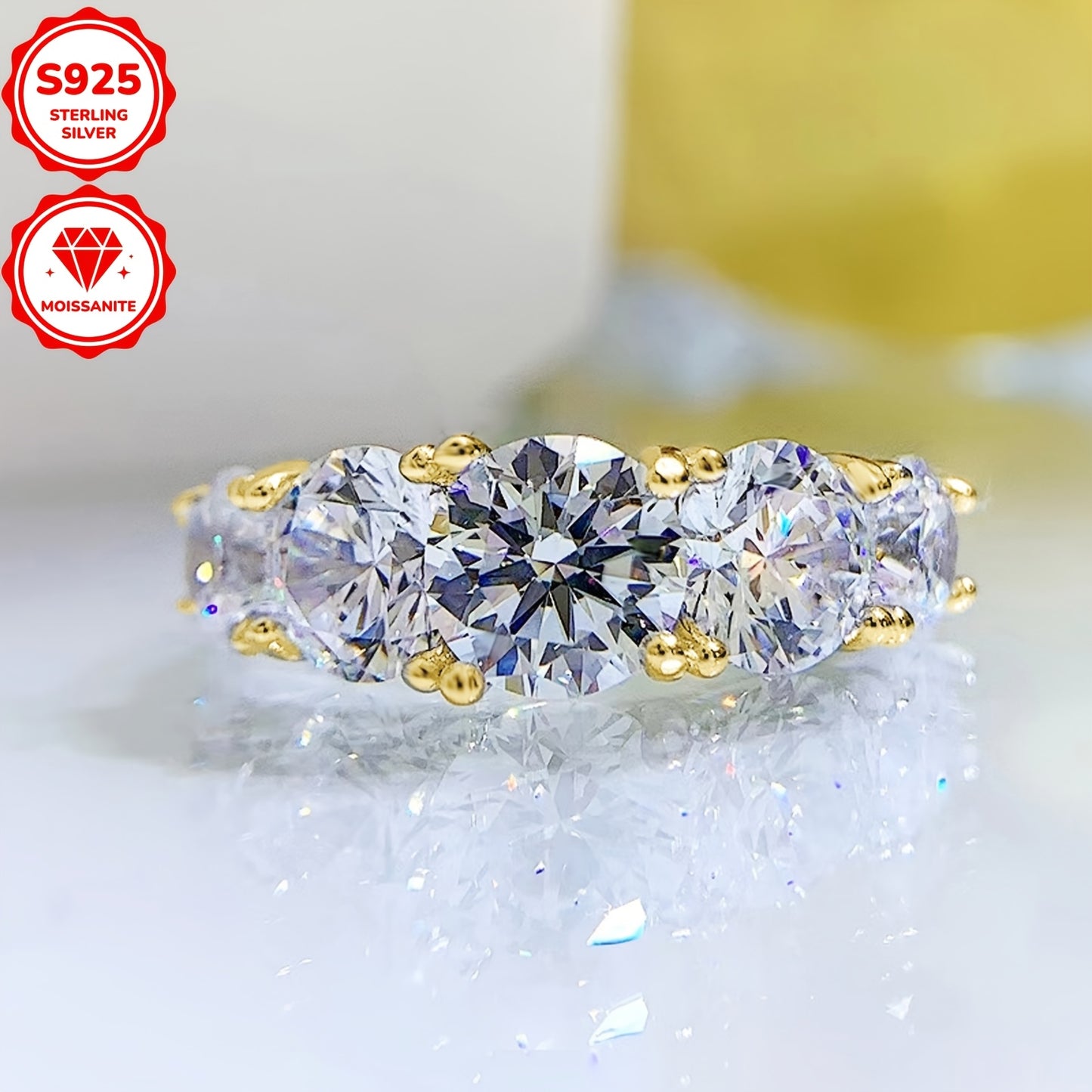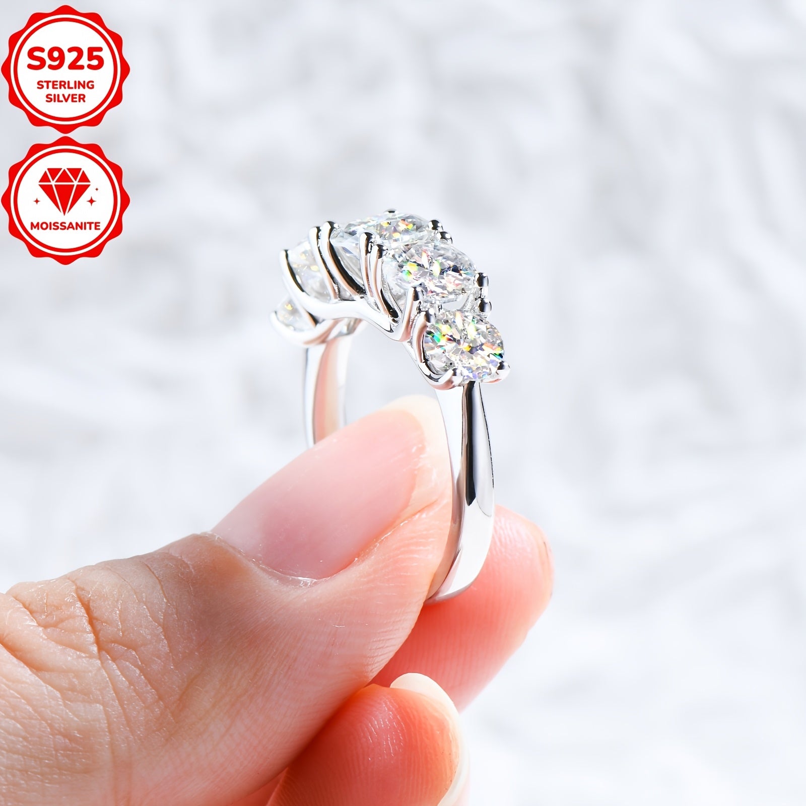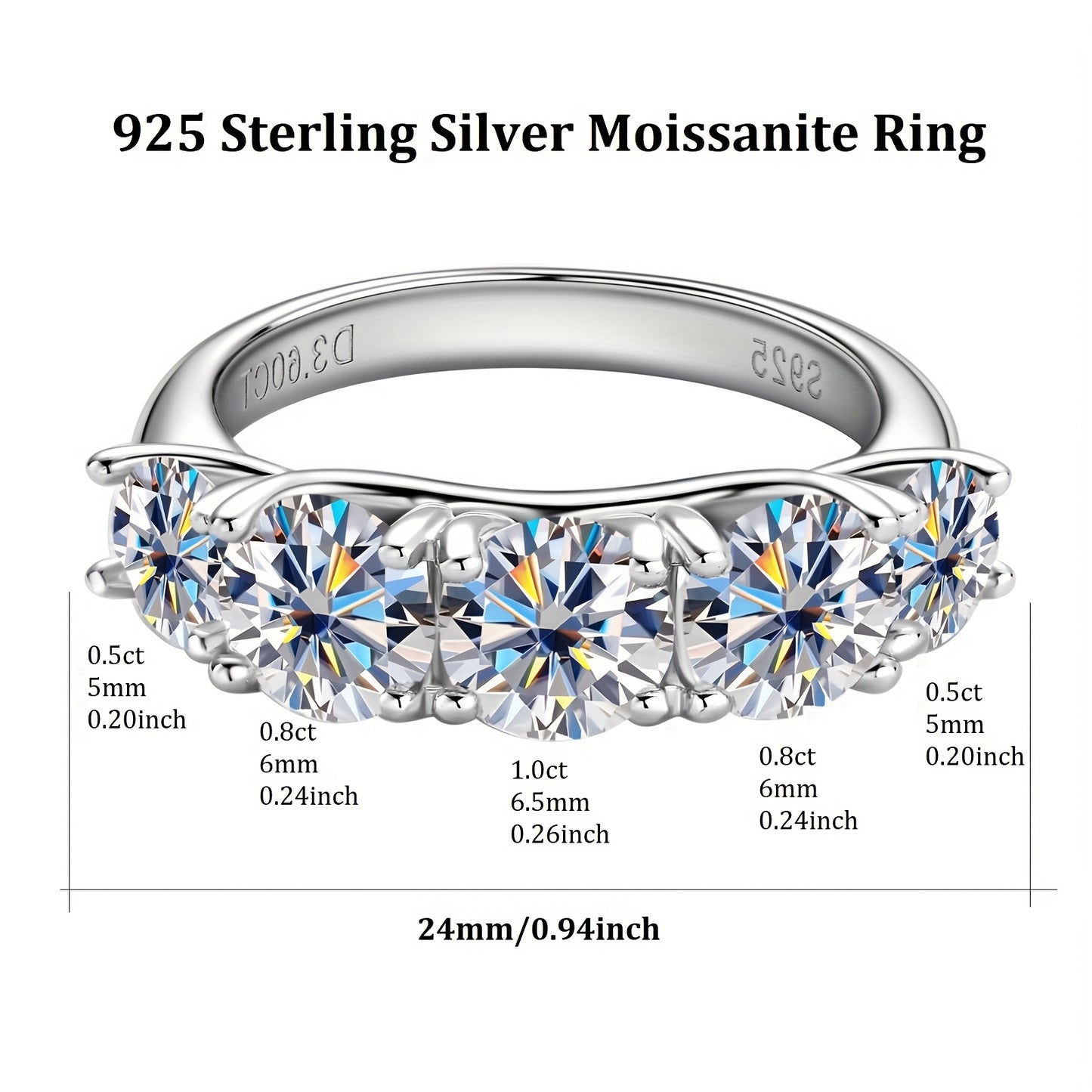 1pc of Moissanite Ring Five-Stone 925 Sterling Silver Engagement Ring 6.5Mm&6Mm&5Mmd Color Round Moissanite Wedding Ring Women'S Silver Ring S925 Jewelry with GRA Certificate, Ring Size US4-US10, Total Weight about 4.2G, Moissanite 6.5Mm*1pc, 6Mm*2pcs, 5M