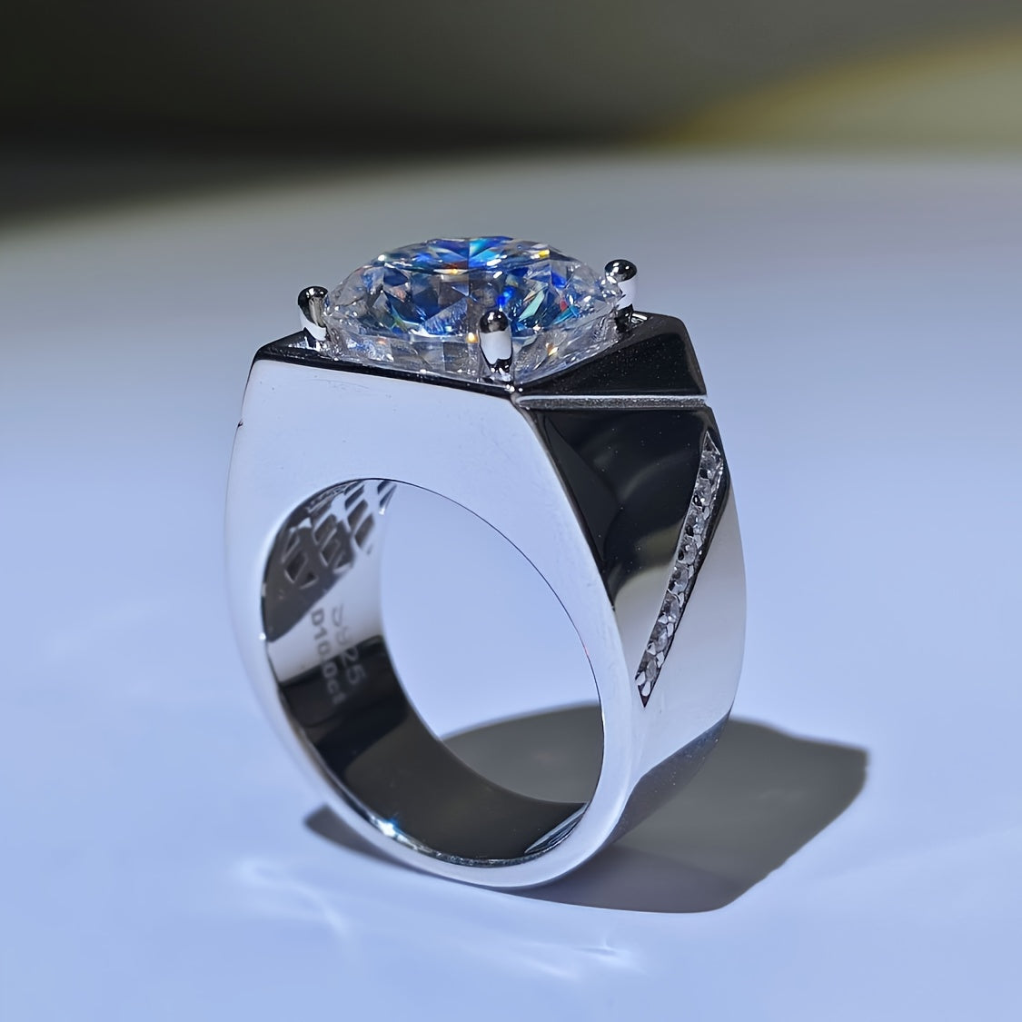 1pc S925 Silvery Inlaid With 10 Carat Moissanite Boutique Luxury High-end Fashionable And Atmospheric Ring, Halloween Gift, Suitable For Gift Giving, Birthday Party, Suitable For Men And Women