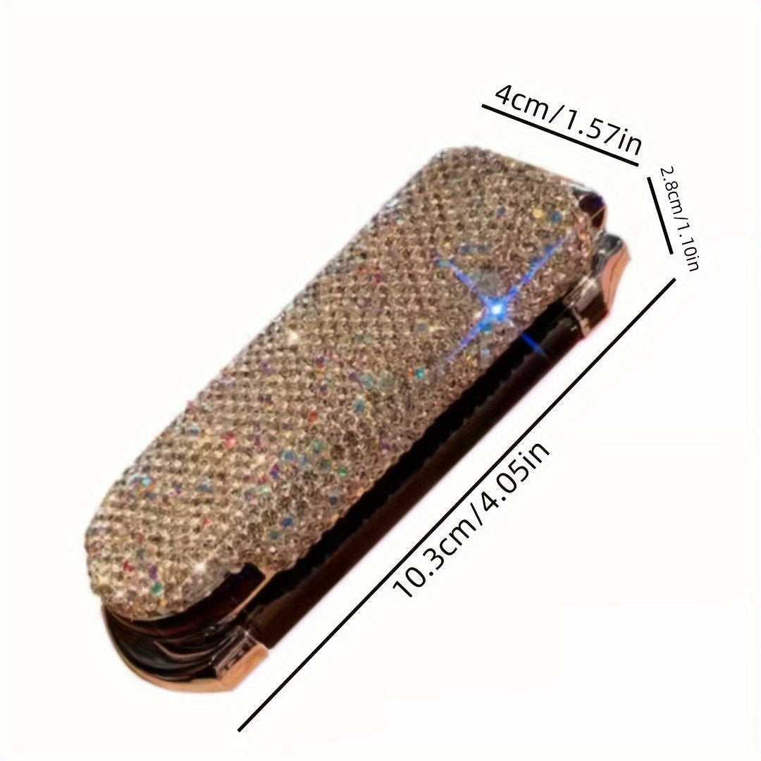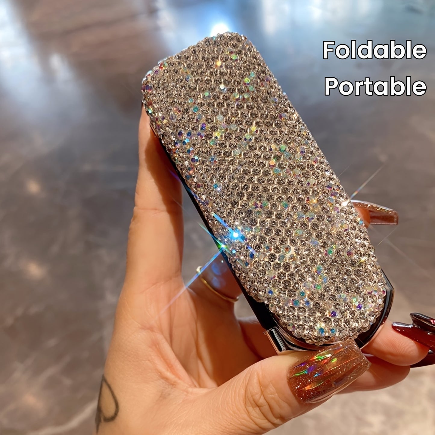 1pc Shiny Rhinestone Decor Hair Comb Foldable Hairdressing Comb With Makeup Mirror Portable Hair Comb Travel Essentials
