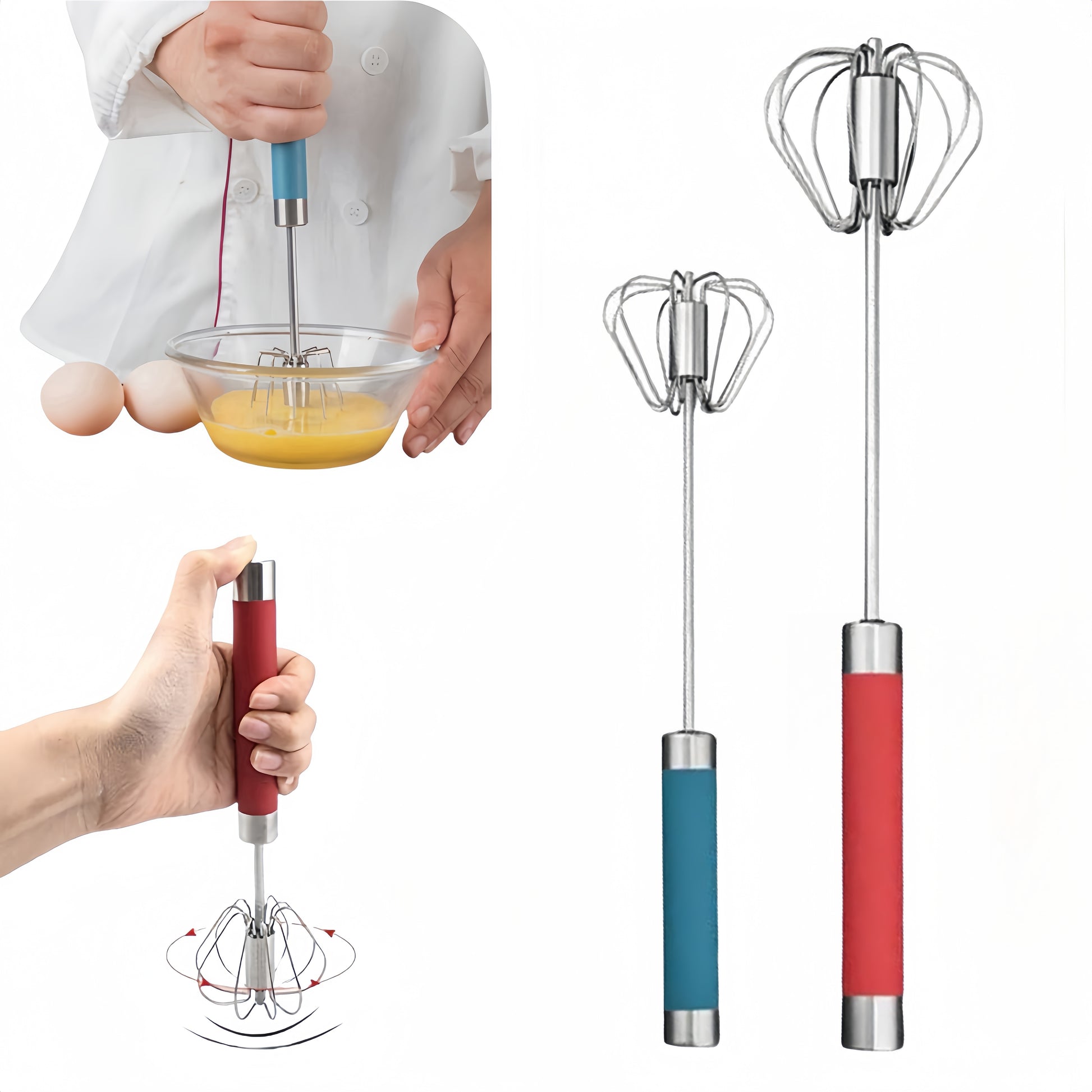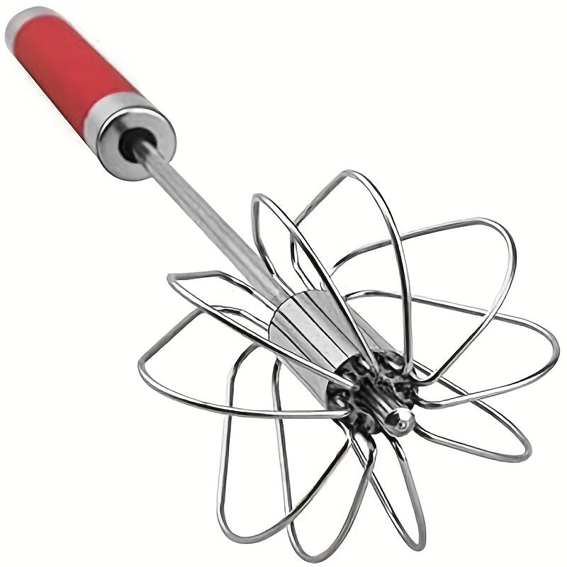 1pc Stainless Steel Deluxe Rotary Whisk - Semi-Automatic, Portable, Non-Slip, Easy Cleaning, and Space-Saving Design for Effortless Egg Beating and Perfect Meringues, Creamy Frostings, and Fluffy Omelets