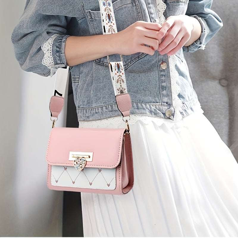1pc Women's Fashion Crossbody Bag, Colorblock Square Shoulder Purse with Argyle Pattern, Synthetic Leather Buckle Closure, Classic Flap Handbag for Casual Occasions, Everyday Handbag | Trendy Crossbody | Synthetic Leather Purse, Purse Crossbody