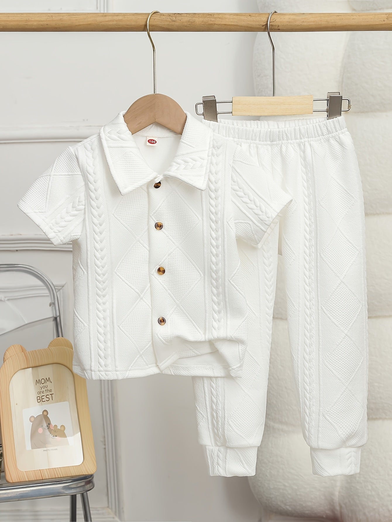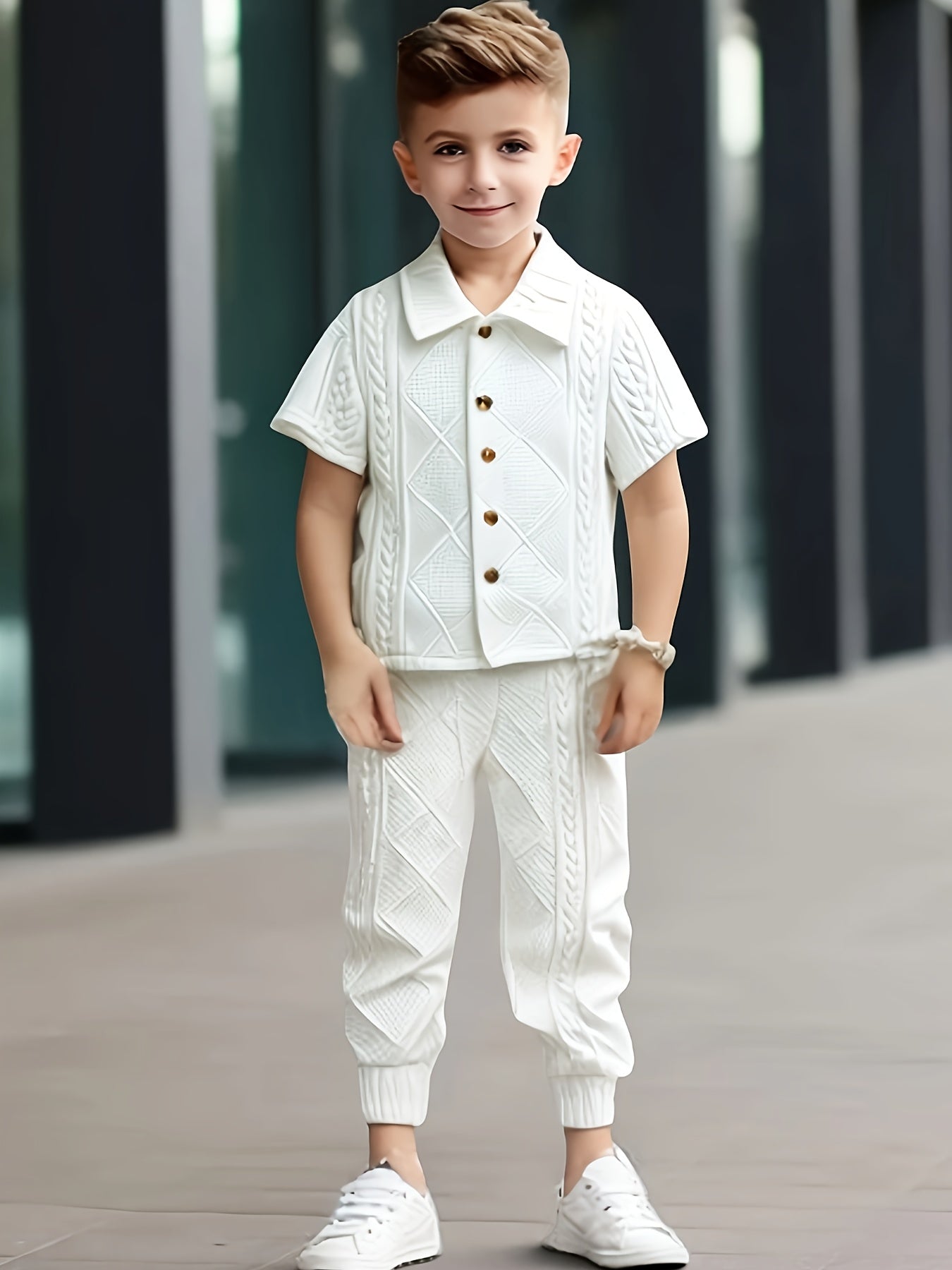1set Boys' Casual Knit Polo Shirt and Jogger Pants Set, Spring/Summer Fashion, Solid Color, Button Detail, Regular Fit, Stretch Fabric - Polyester (95%) and Spandex (5%), for Outdoor