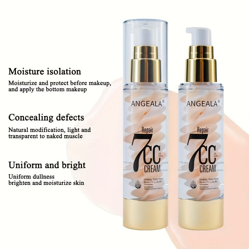 2-Color Luxury Beauty CC Cream, Moisturizing Liquid Foundation with Concealer and Primer