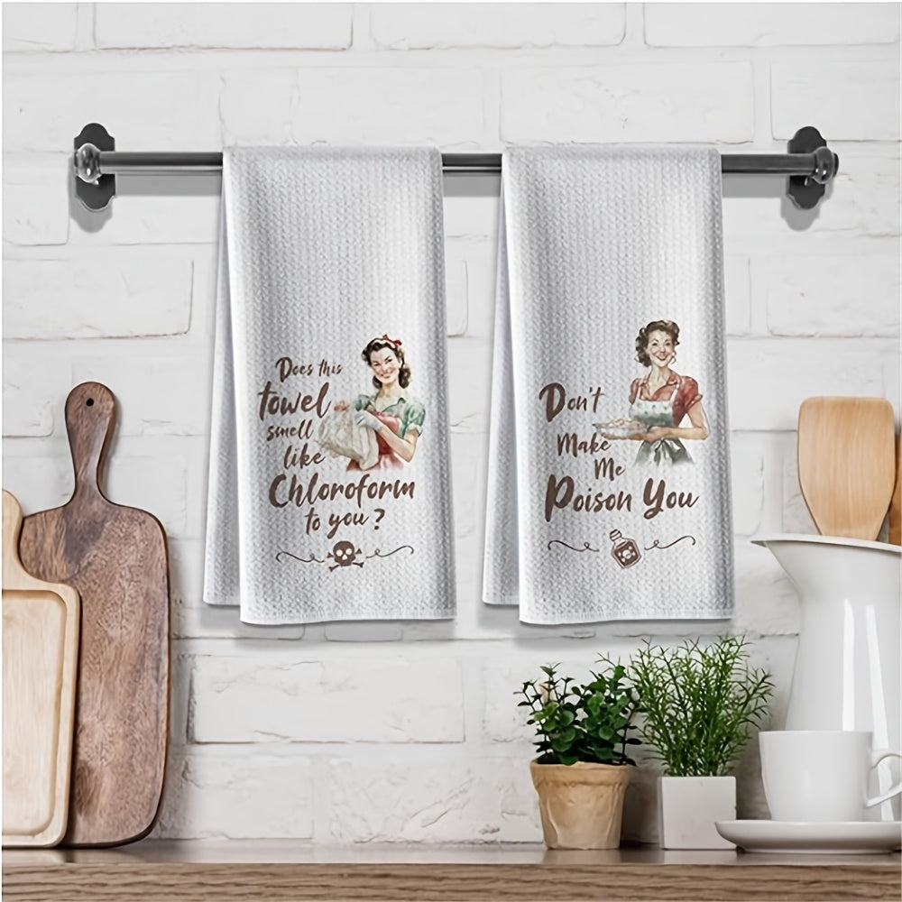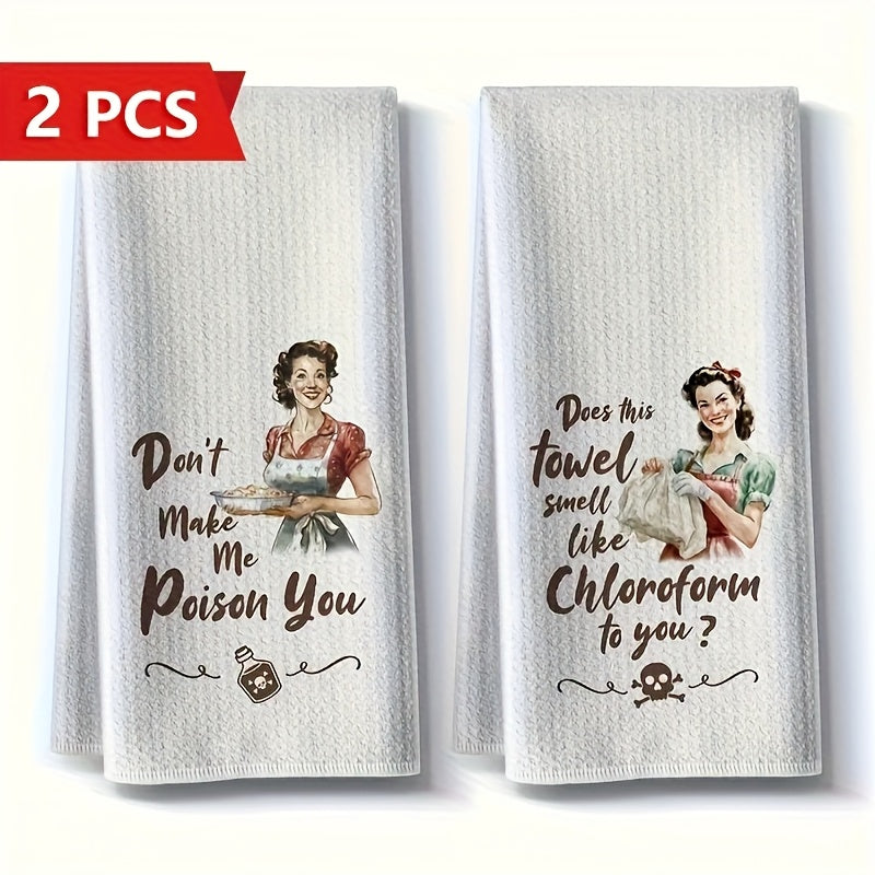 2 Strip Pack Style Humor Kitchen Towels - Absorbent, Soft, & Machine Washable 18x26 Inches - Perfect Modern Housewarming Gift Local Warehouse