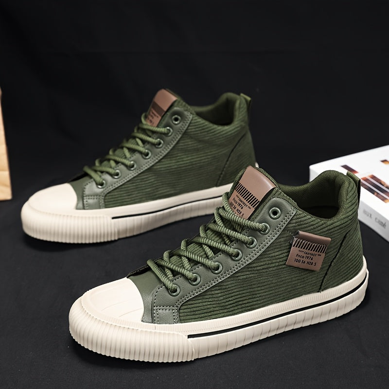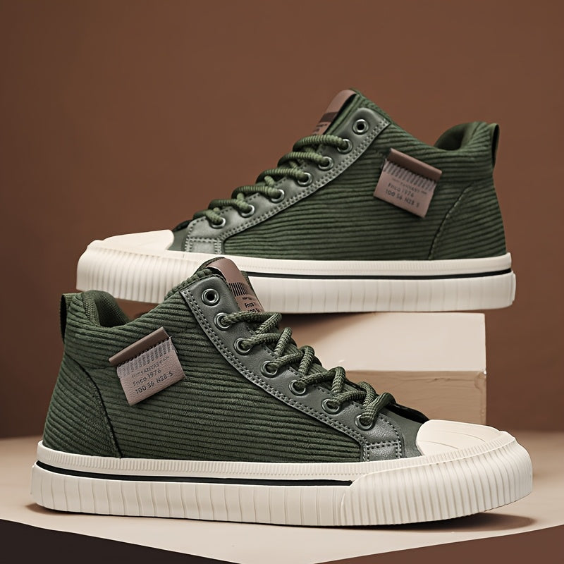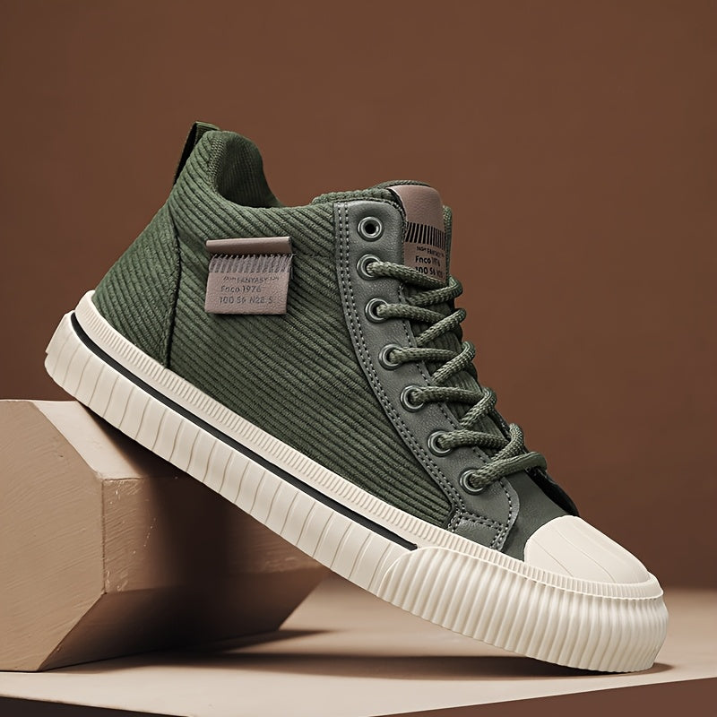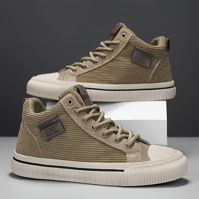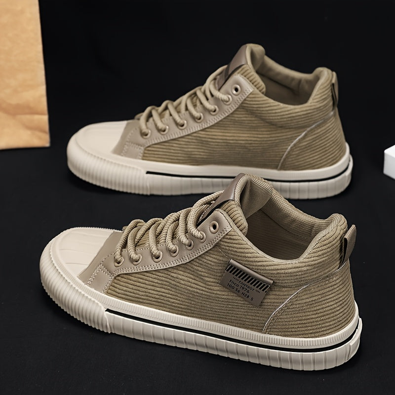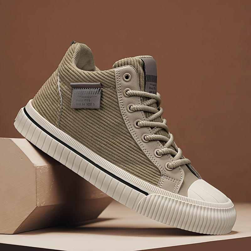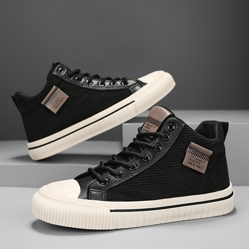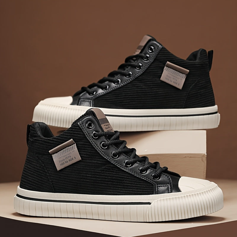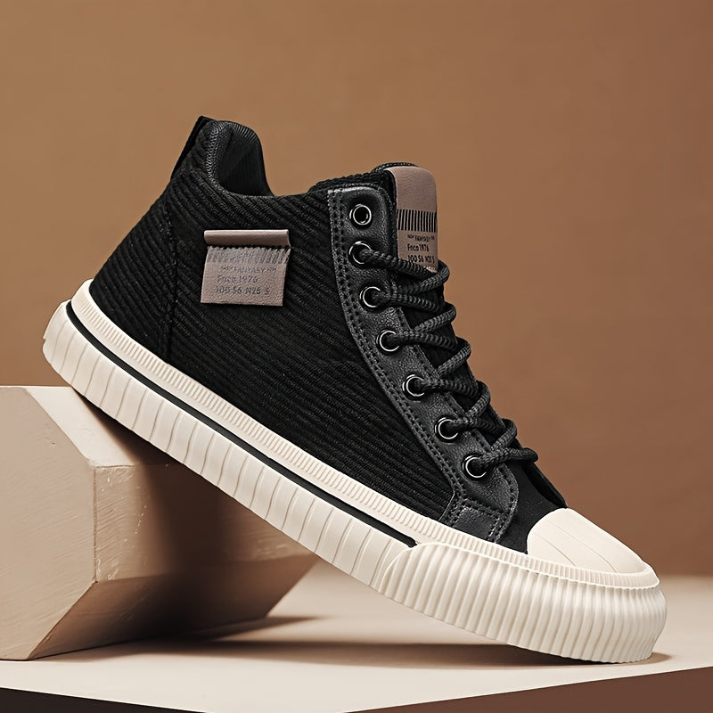 2025 All-Season Casual Men'S Sneakers - Black High-Top Lace-Up with Thick Sole, Stylish Round Toe Design, Perfect for Hiking & Outdoor Activities, Casual Footwear | Stylish High Top Sneakers | Comfortable Footwear