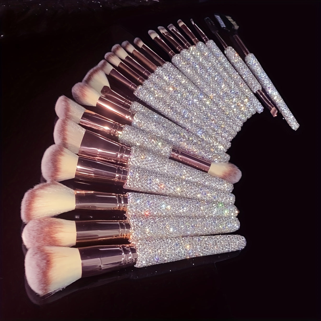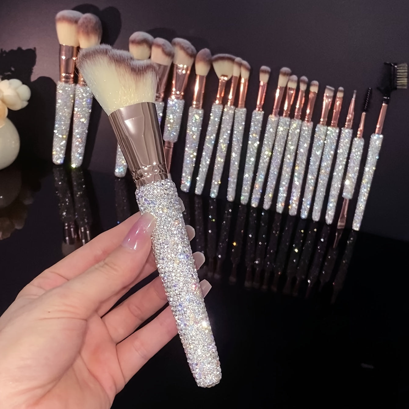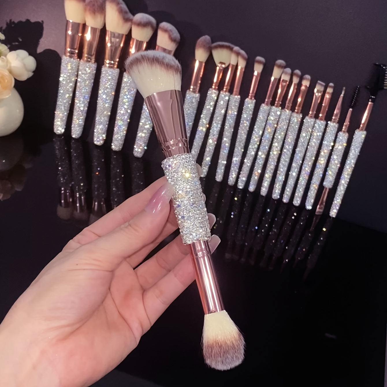20pcs Luxury Diamond Makeup Brush Set - Professional Bling Face & Eye Cosmetic Tools with Highlighter, Powder, Contour, Foundation, Lip, Nose Shadow, Eyeshadow, Mascara, Brow Comb, Blending, Concealer Brushes
