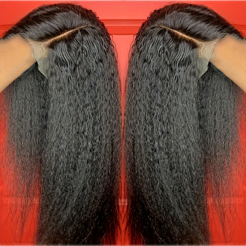 250% Density 5*5 Kinky Straight Glueless Ready to Go Wigs boy wave Deep Wave Wigs Human Hair Pre Cut Lace for Beginners Kinky Straight Lace Front Wig No Glue Lace Wig Yaki Straight Human Hair Wigs Pre plucked for Women
