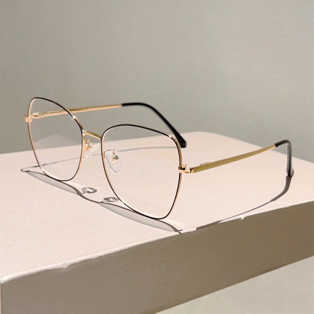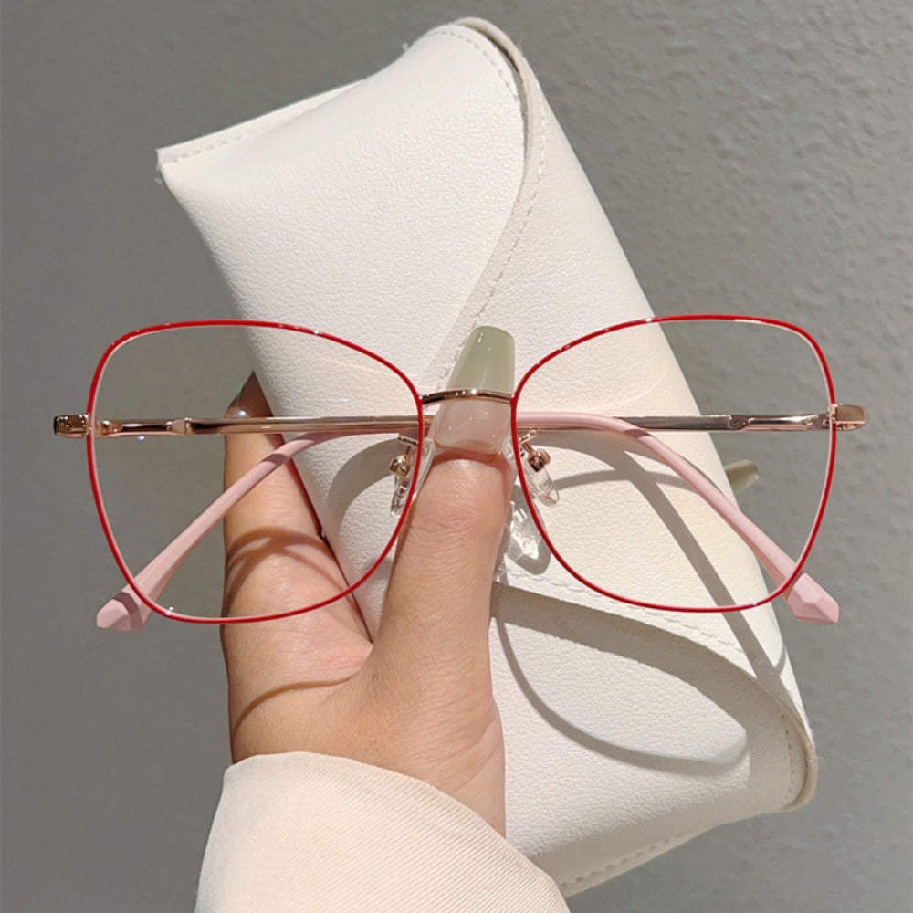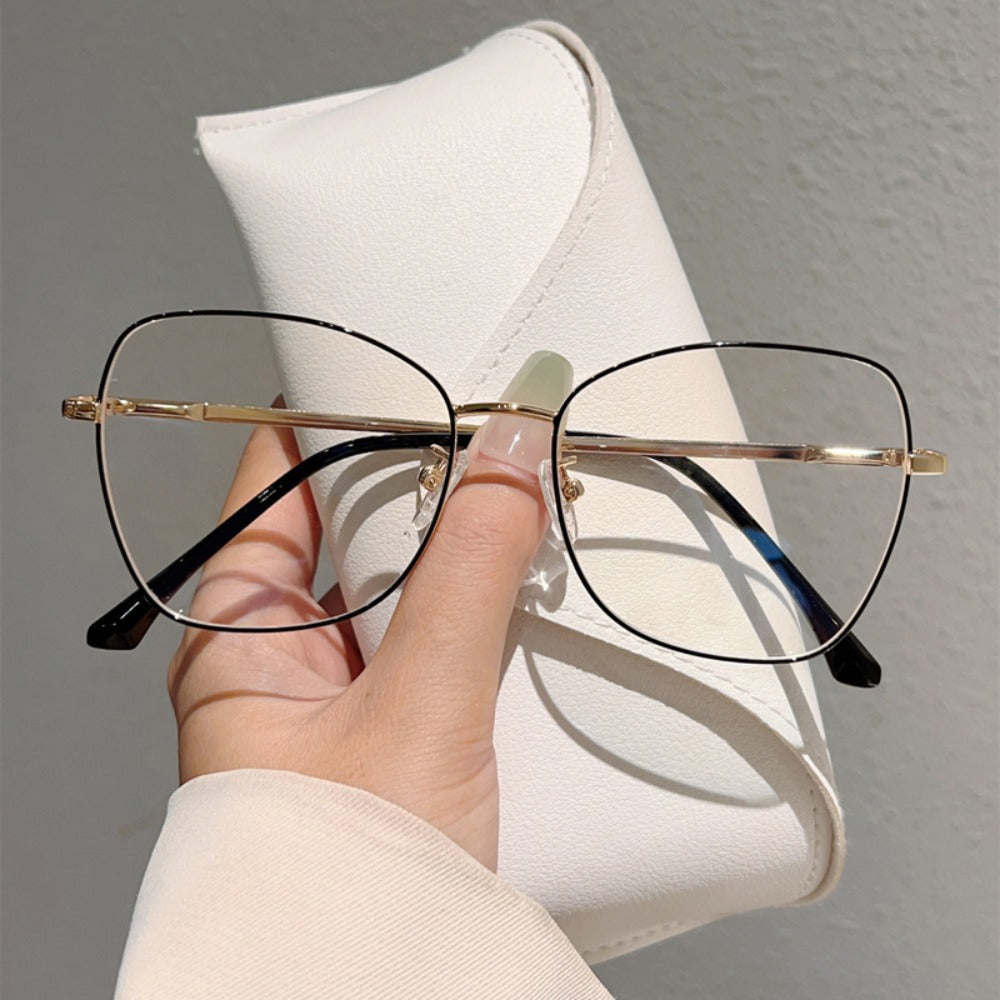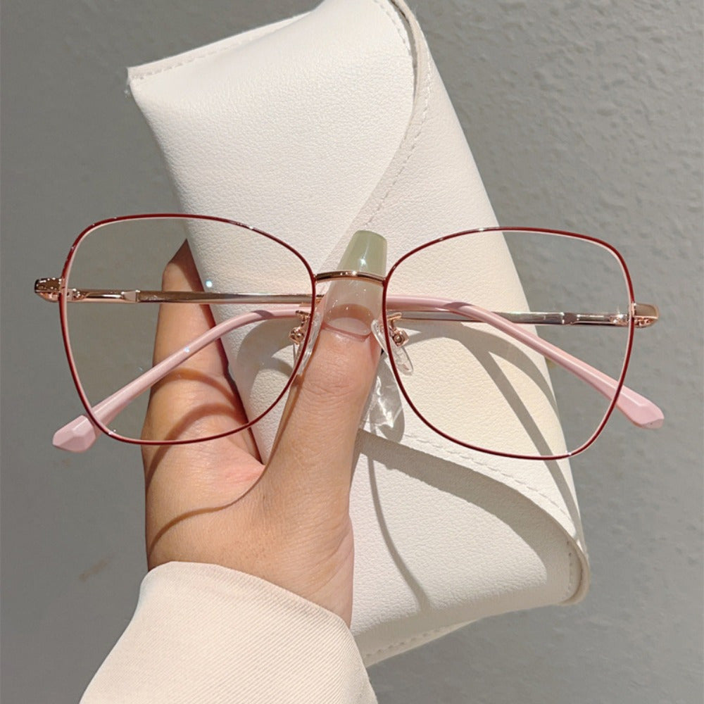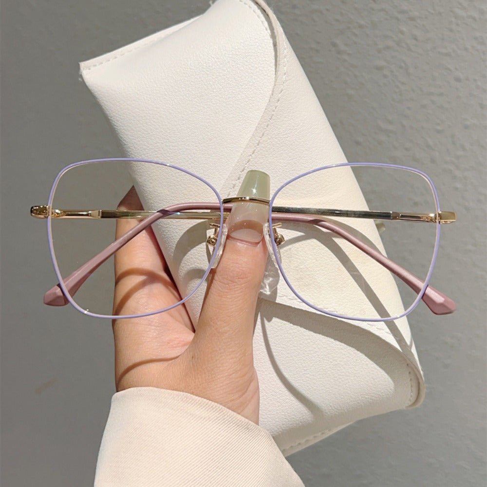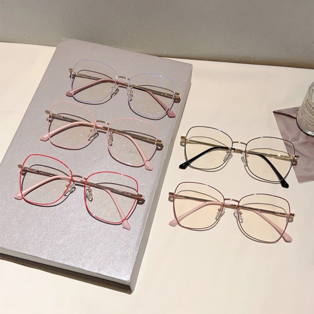 2D Flat - Retro Fashion Spring Leg Metal Frame New Anti-Blue Glasses Advanced Korean Version Plain Face Temperament Flat Mirror