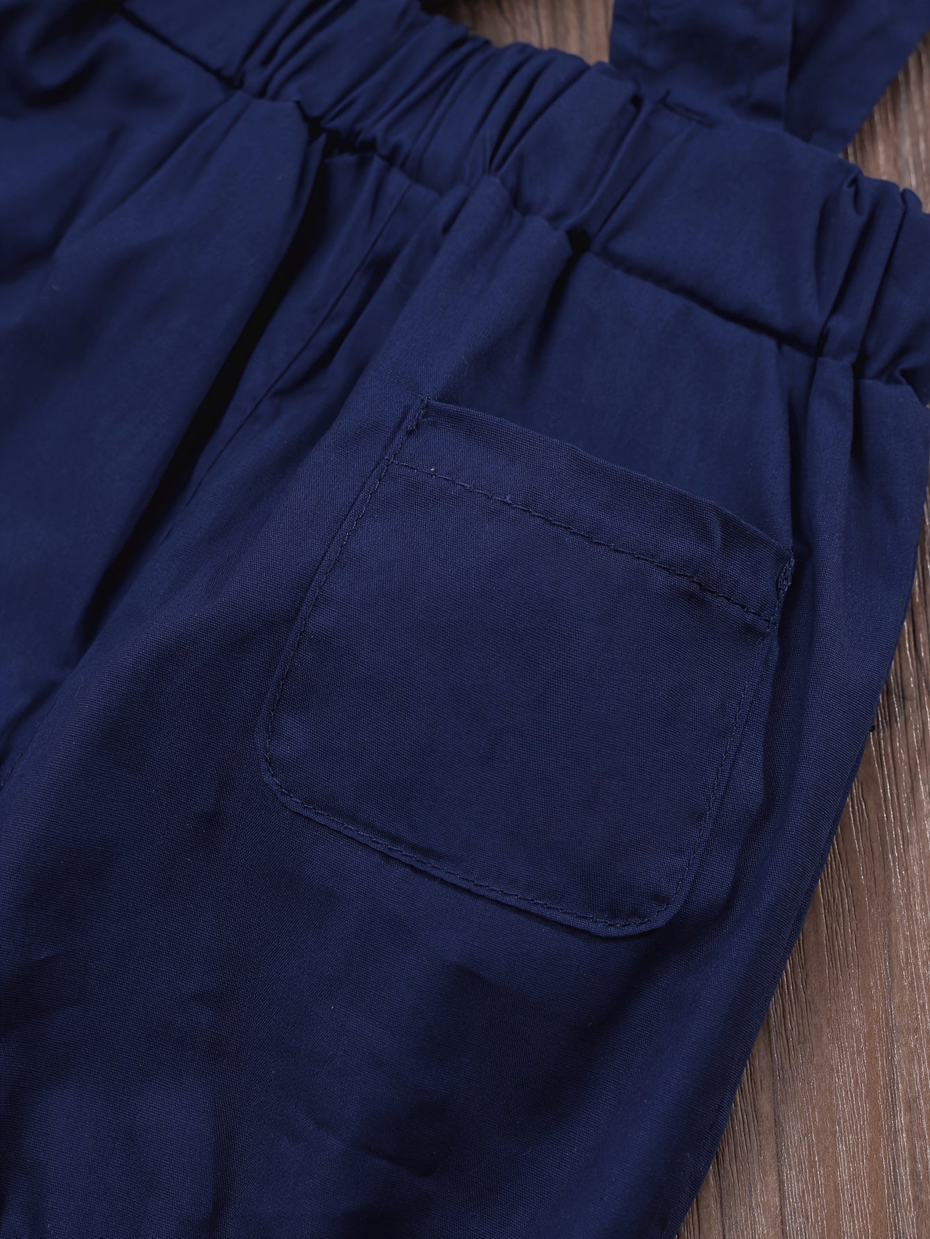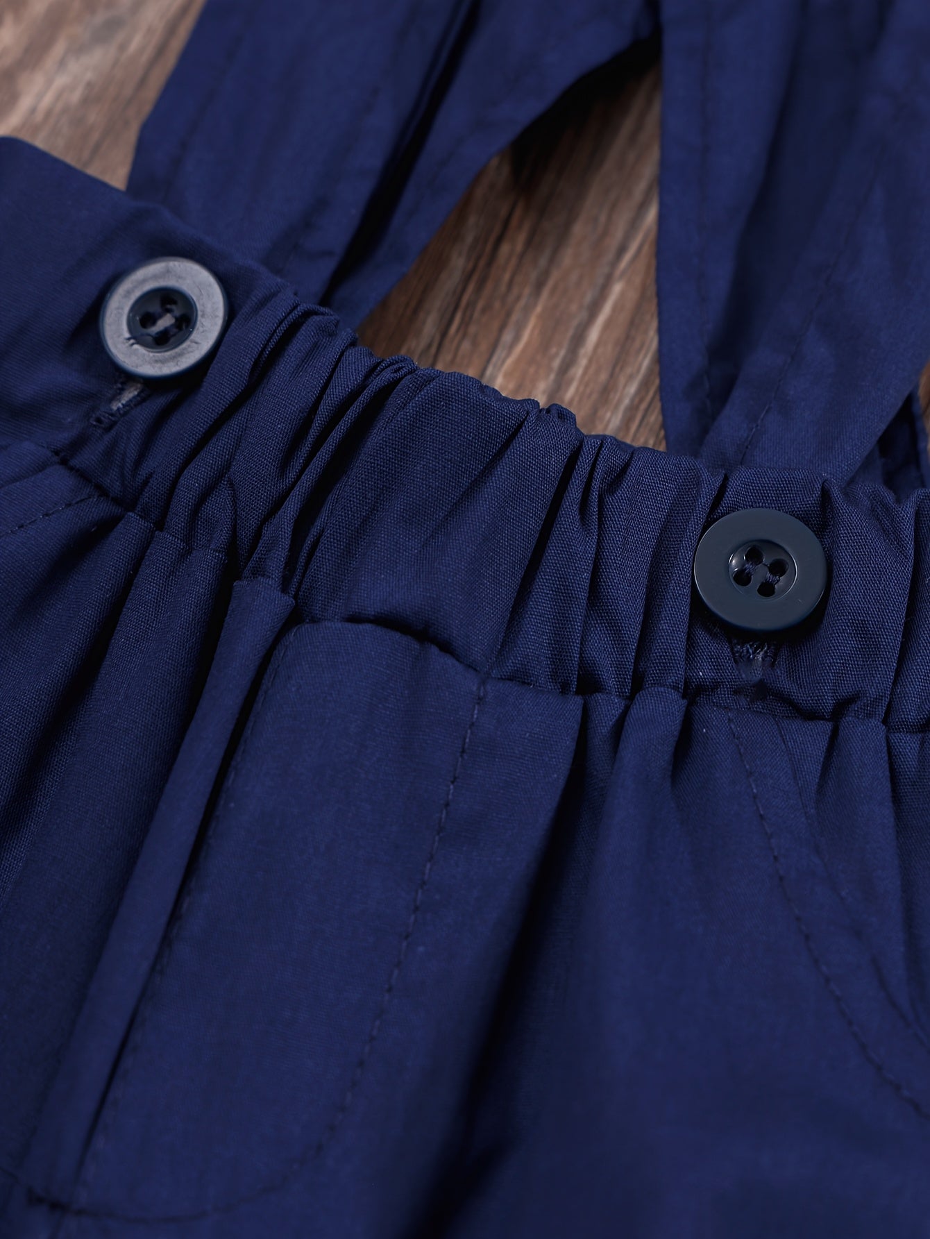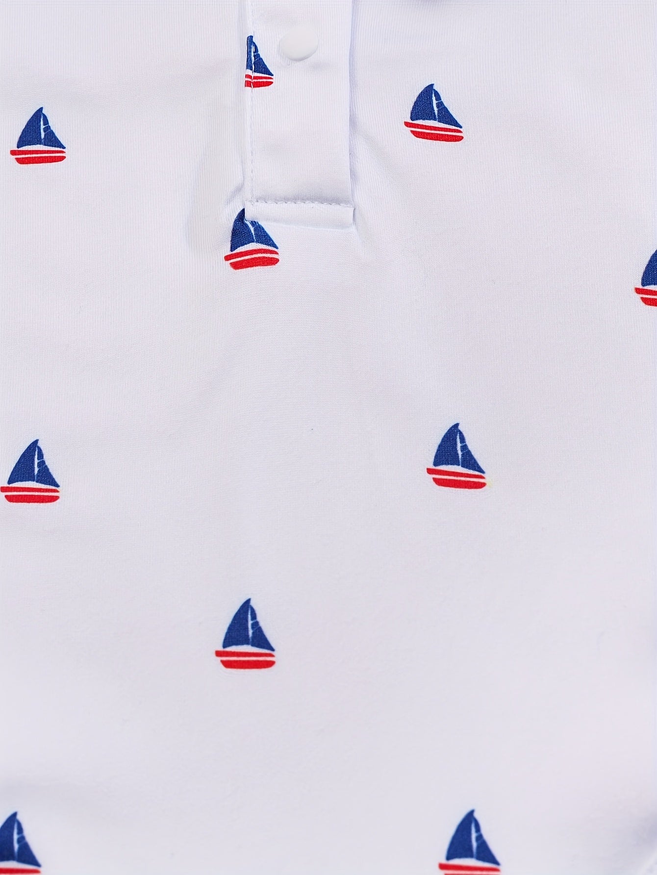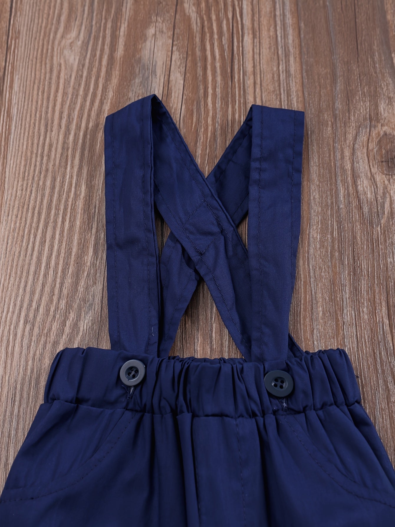 2pcs Baby Boys Casual Short Sleeve Polo Shirt & Suspender Pants Set, Polyester Ditsy Floral Pattern, Loose Fit, Non-Stretch, Spring/Summer/Fall, for Outdoor