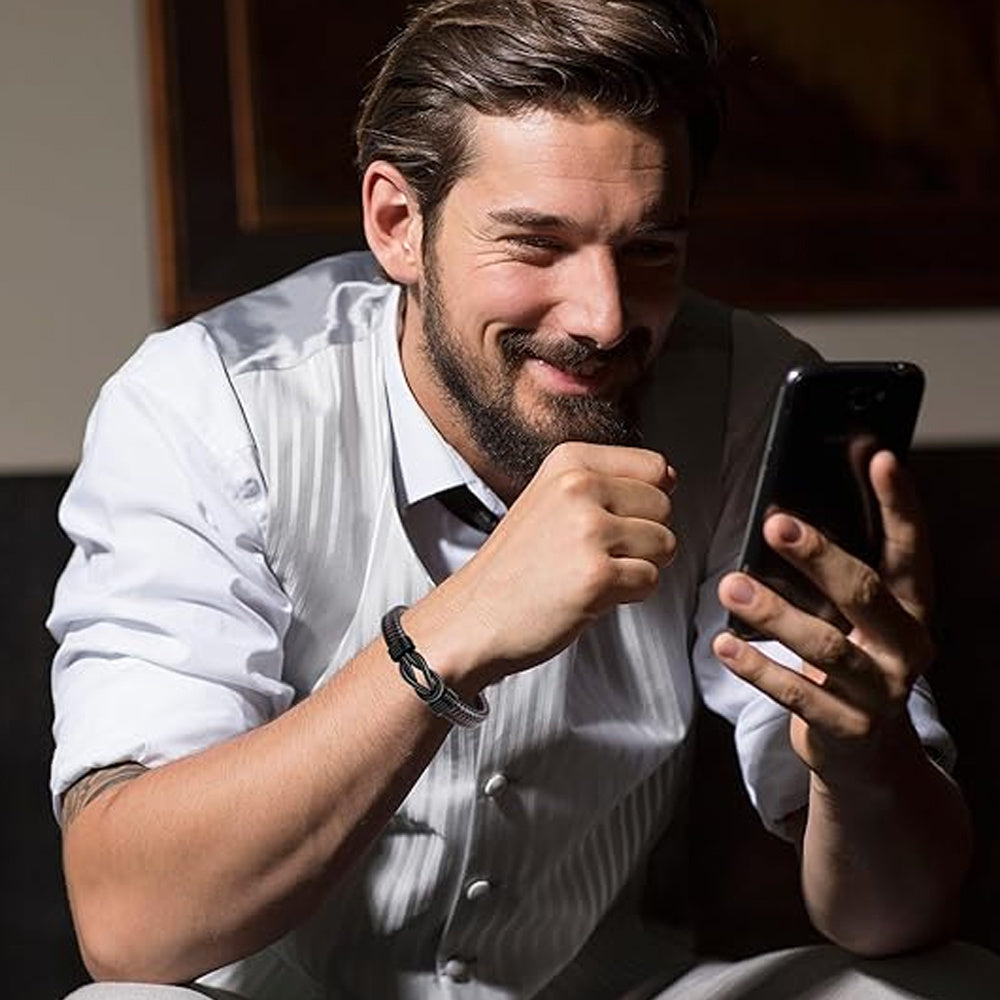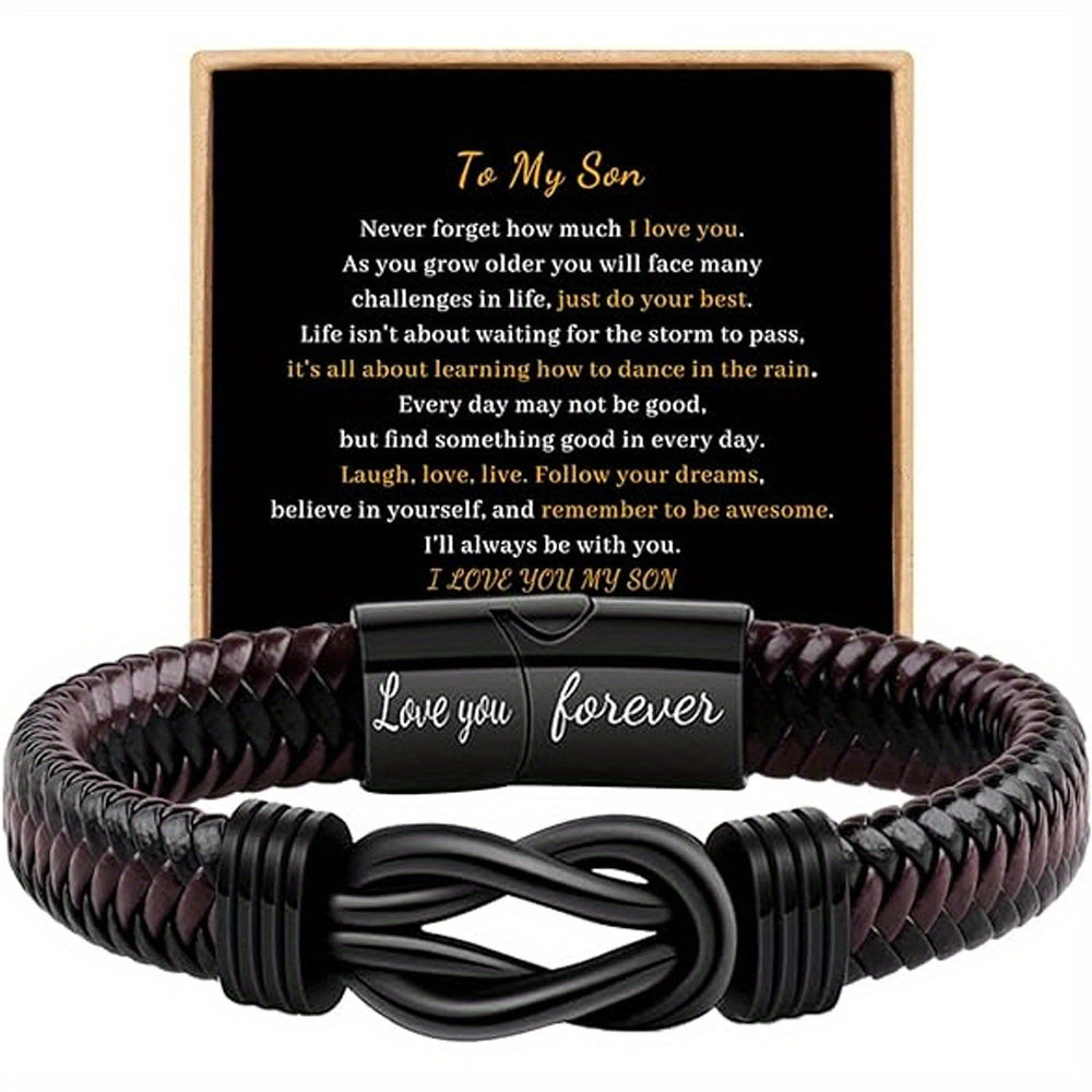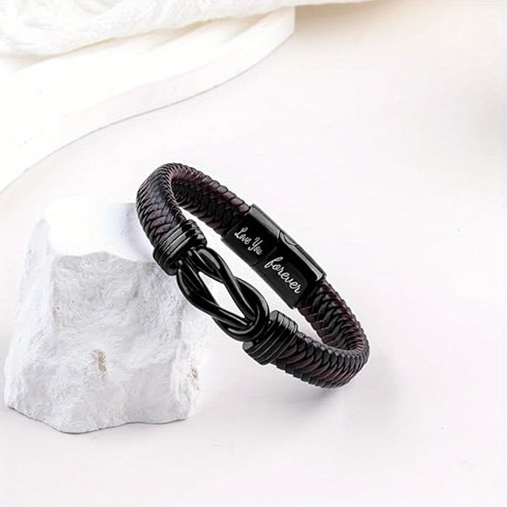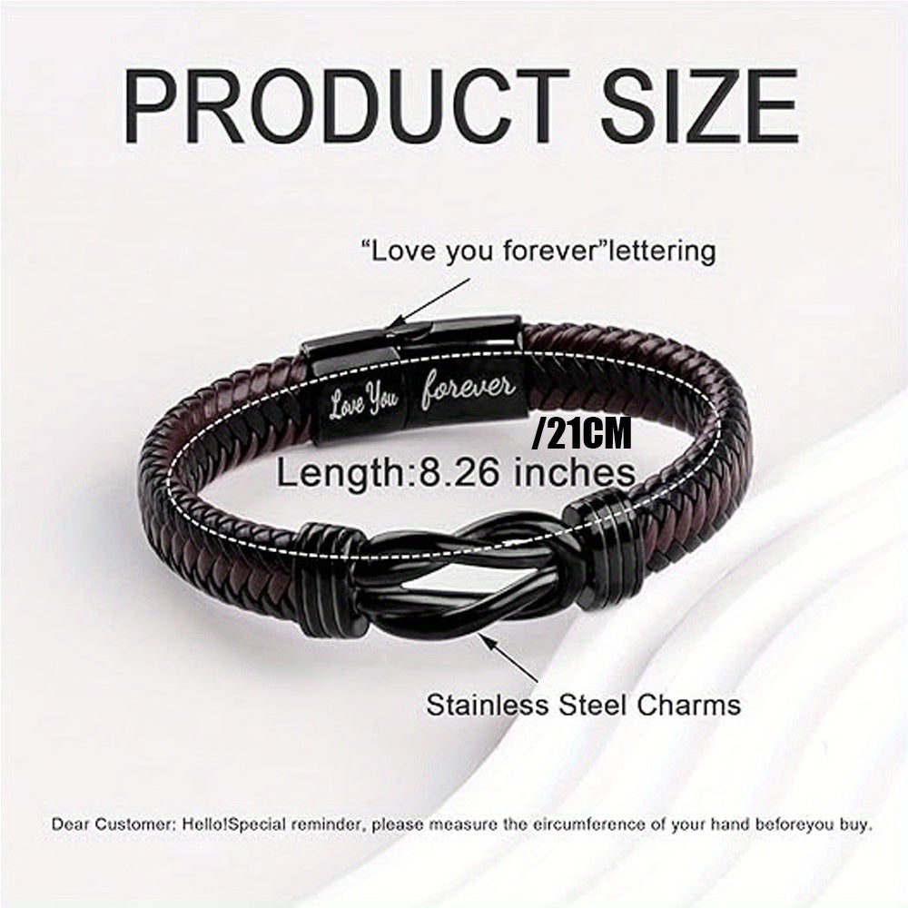 2pcs Multi-Layer Leather Bracelet For Men, Elegant Style With Stainless Steel Infinity Charm, Perfect Gift For Son