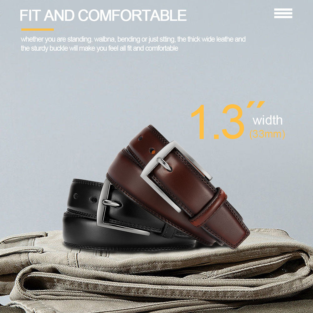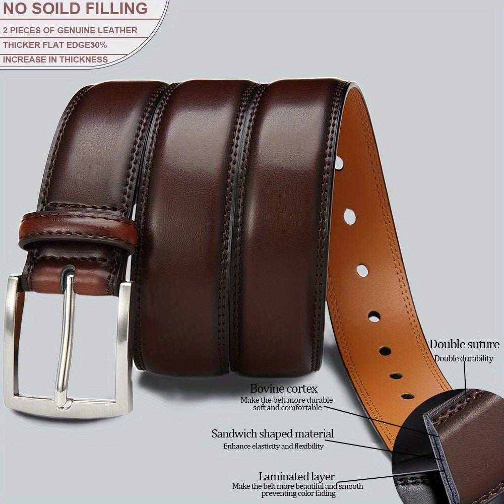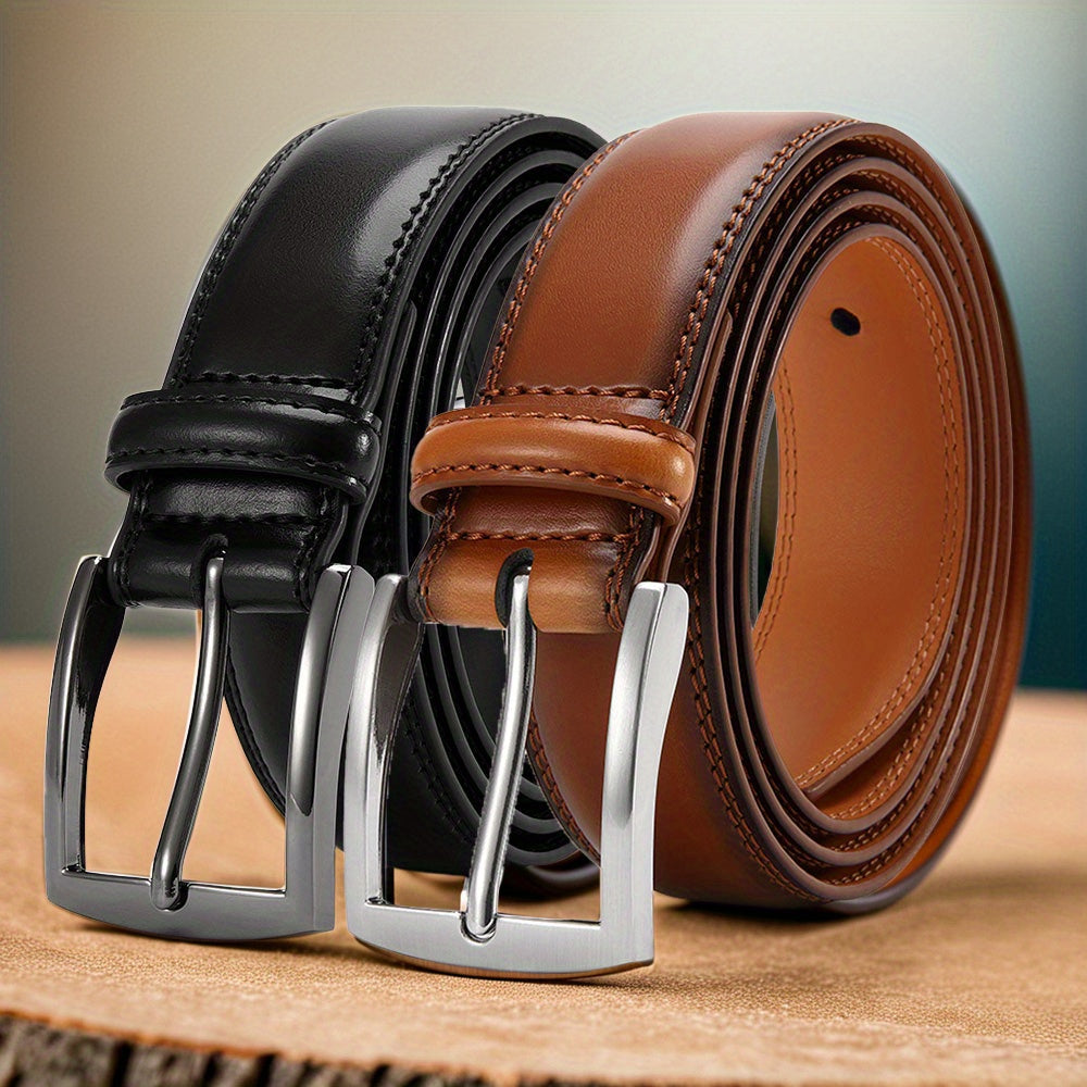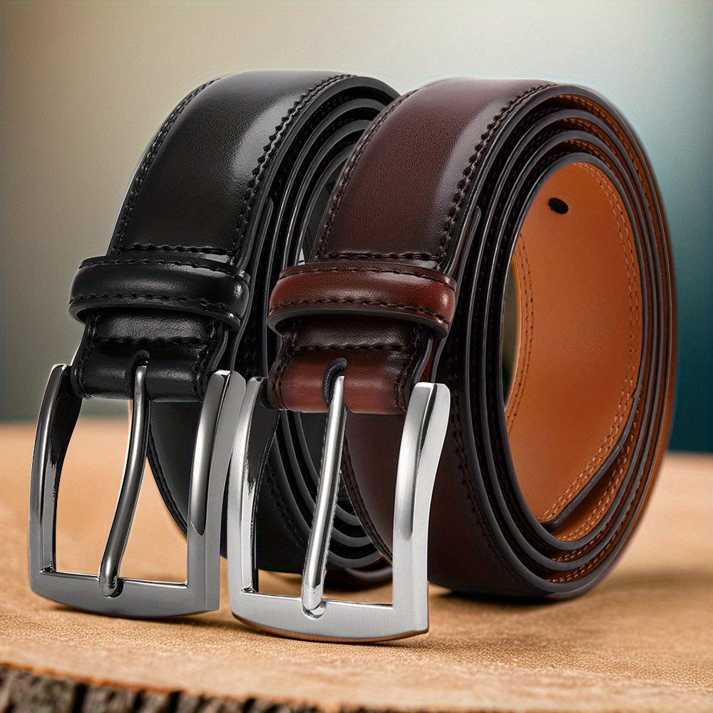 2pcs Stylish Men'S Leather Belts Set - Featuring Pin Buckle and Premium Cowhide Material | Ideal Fashion Accessory for Business and Everyday Occasions