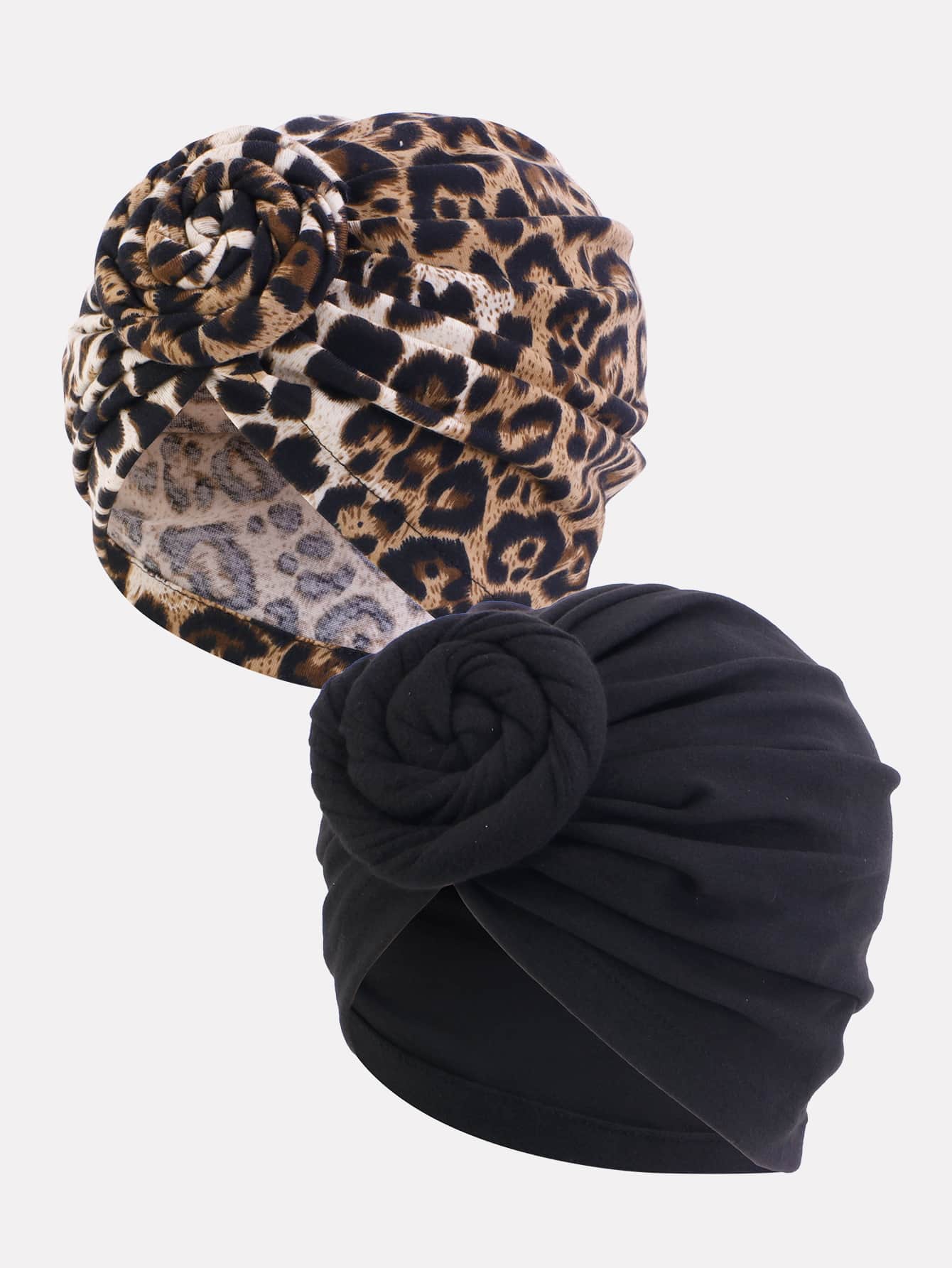 2pcs Women's Multicolor Bohemian Swirl Flower Head Wrap Elegant Leopard Print