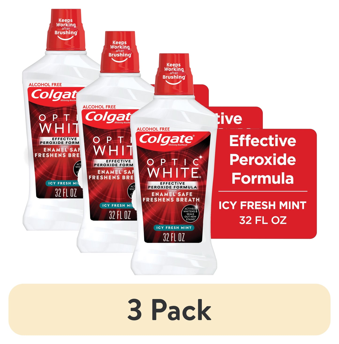 (3 pack) Colgate Optic White Whitening Mouthwash, Fresh Mint, 32 fl oz