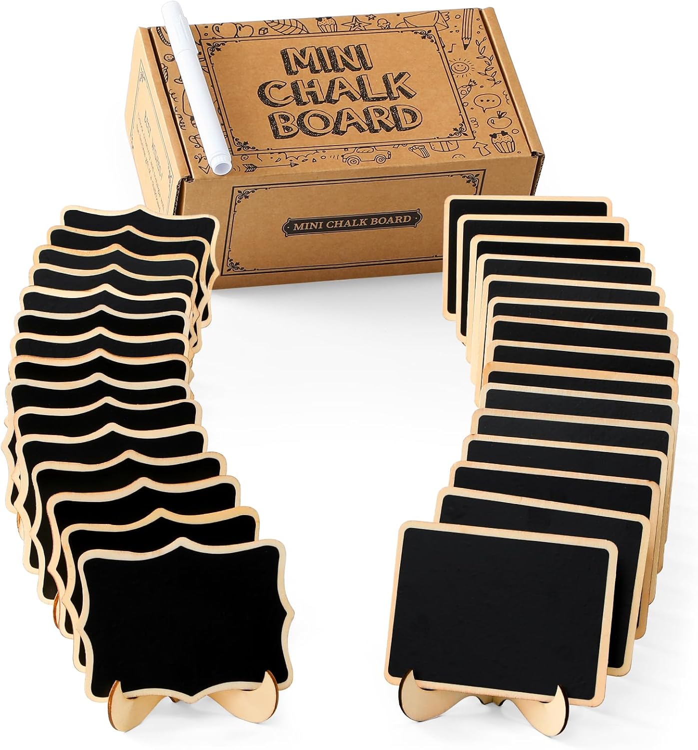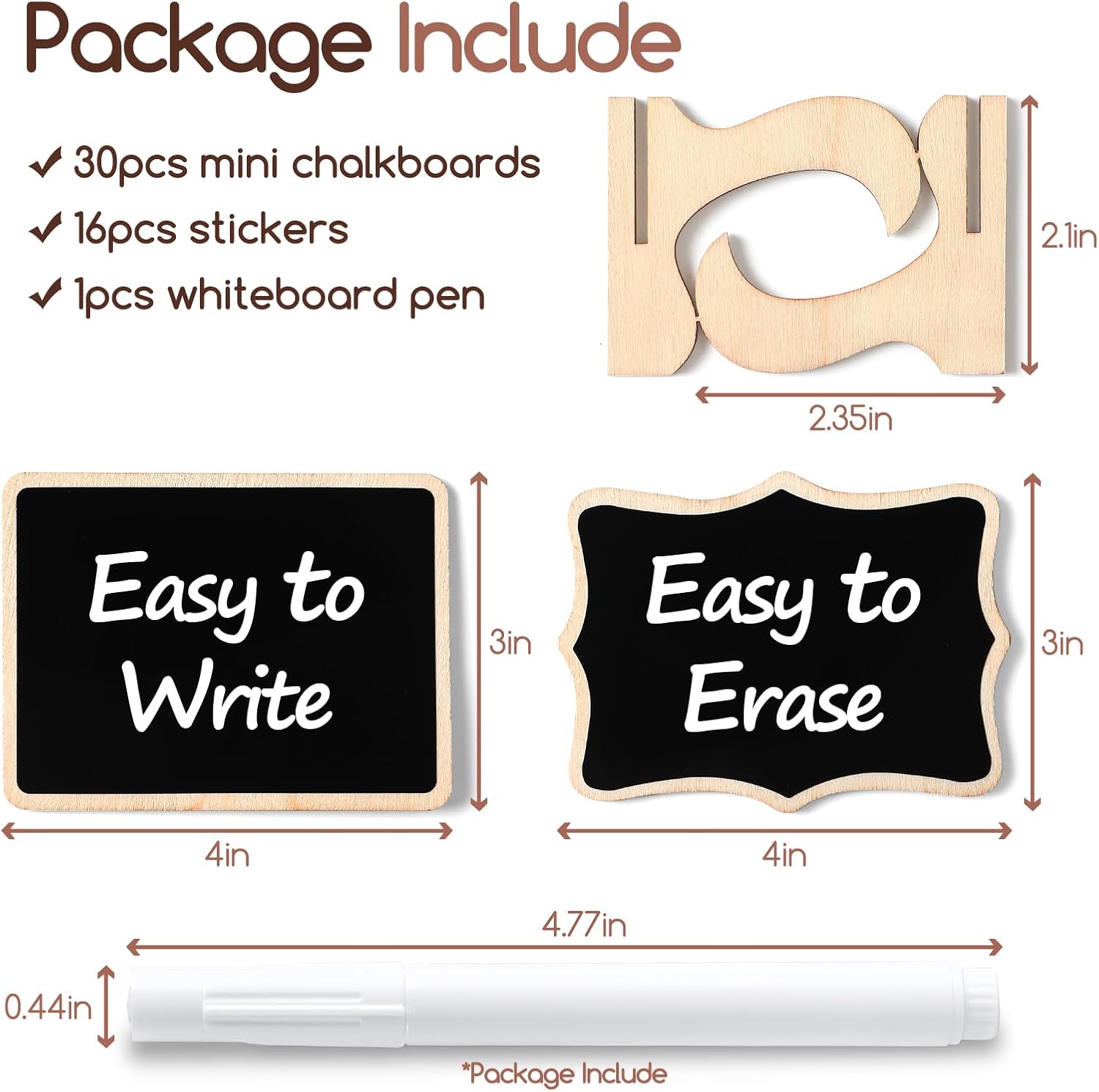 30 Pack Mini Chalkboard Signs for Food with Easel Stand, Small Chalk Board for Wedding Signs, Food Signs, Place Cards, Message Board, Party Supplies and Event Decorations - with Reusable Labels