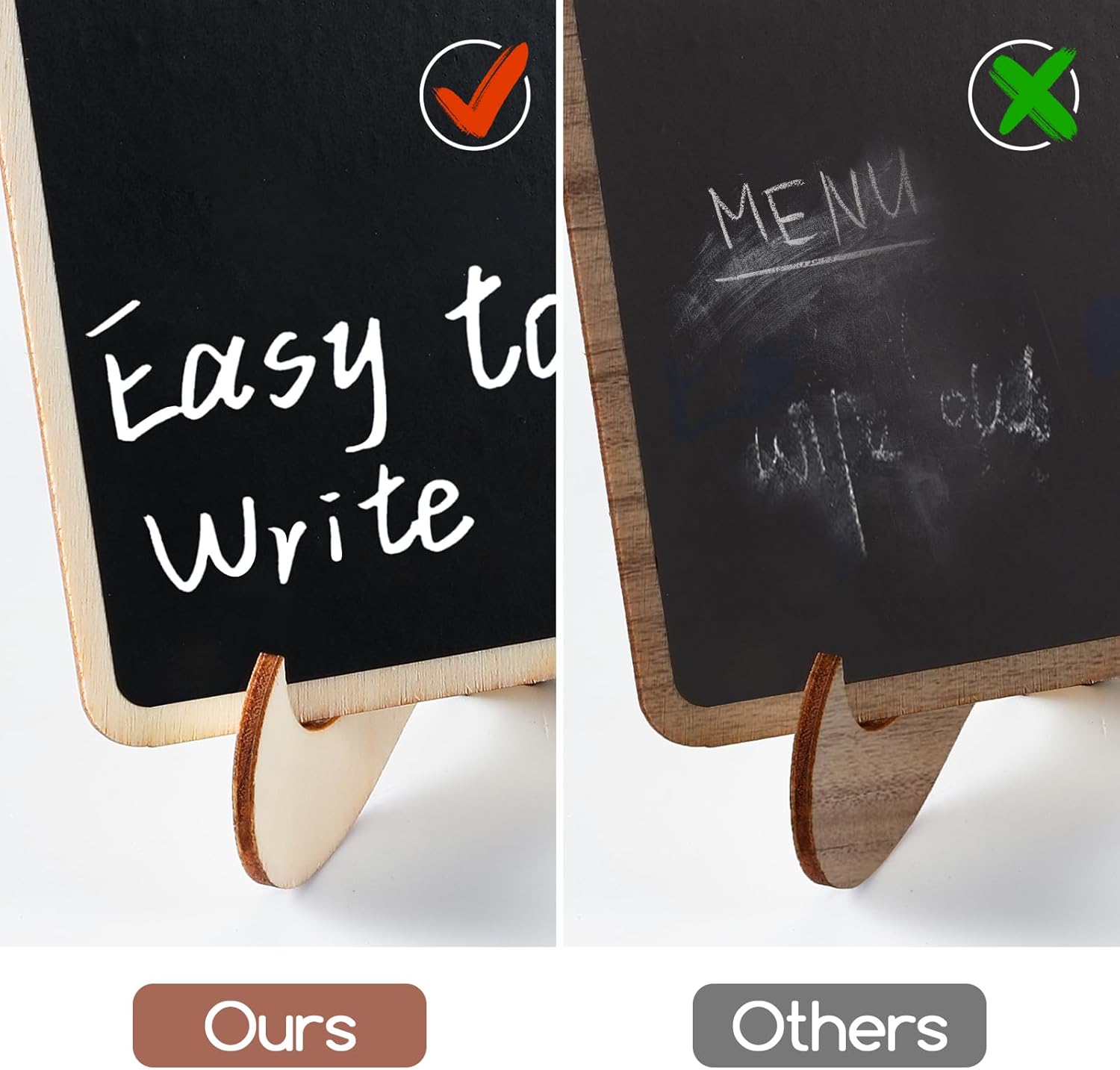Quality Craftsmanship: Crafted from high-quality, smooth material, our mini chalkboards are designed with precision. Not only are they splinter-free, but they also boast enduring durability. Made to stand the test of time, these chalkboards are both long-lasting and consistently reusable, ensuring you receive unwavering value.