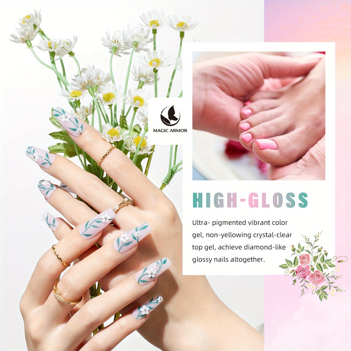 32 Colors Gel Nail Polish Set - Floral Rhapsody Series Pastel Paint UV Soak Off Four Seasons Manicure Starter Set for Women