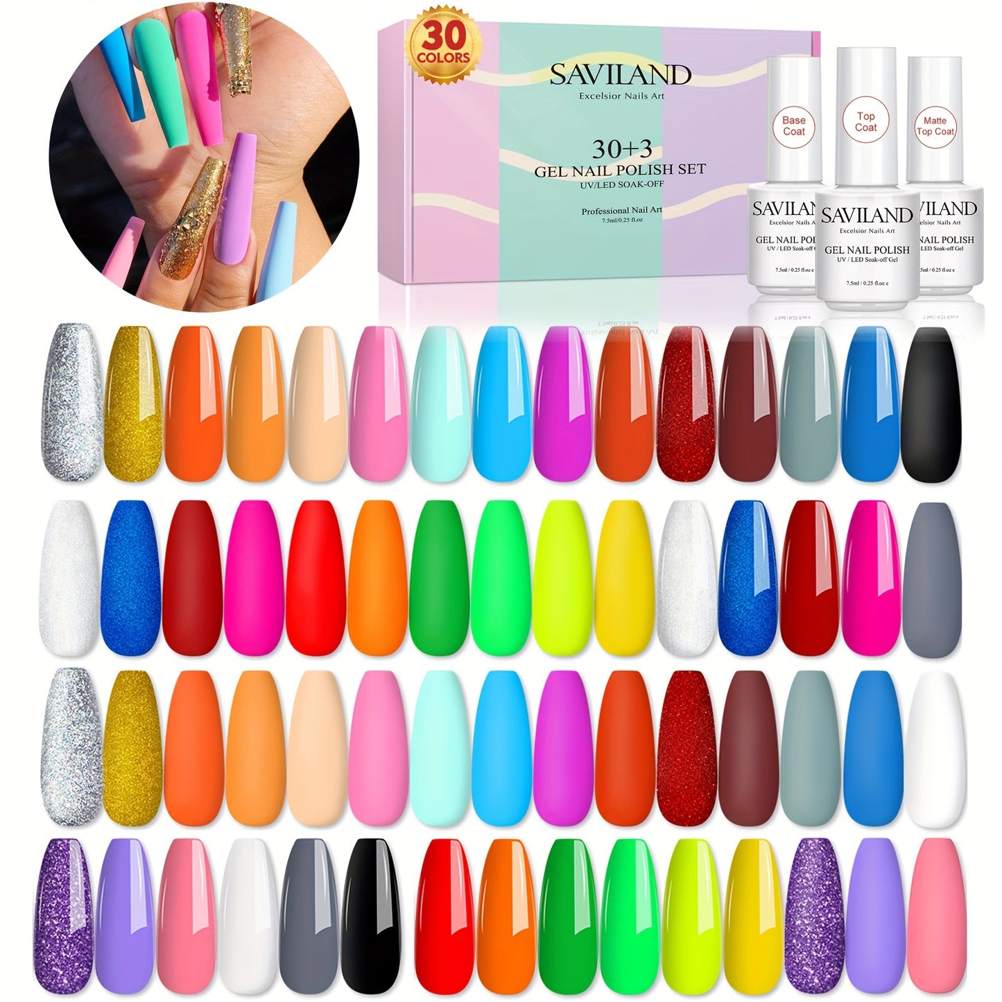 33PCS SAVILAND Neon Gel Nail Polish Kit - Vibrant 30-Color Soak Off Gel Set with Base and Top Gel Coat, Matte Top Gel for Nail Art Design, Perfect Gifts for Women, Nail Enthusiasts and Beginners