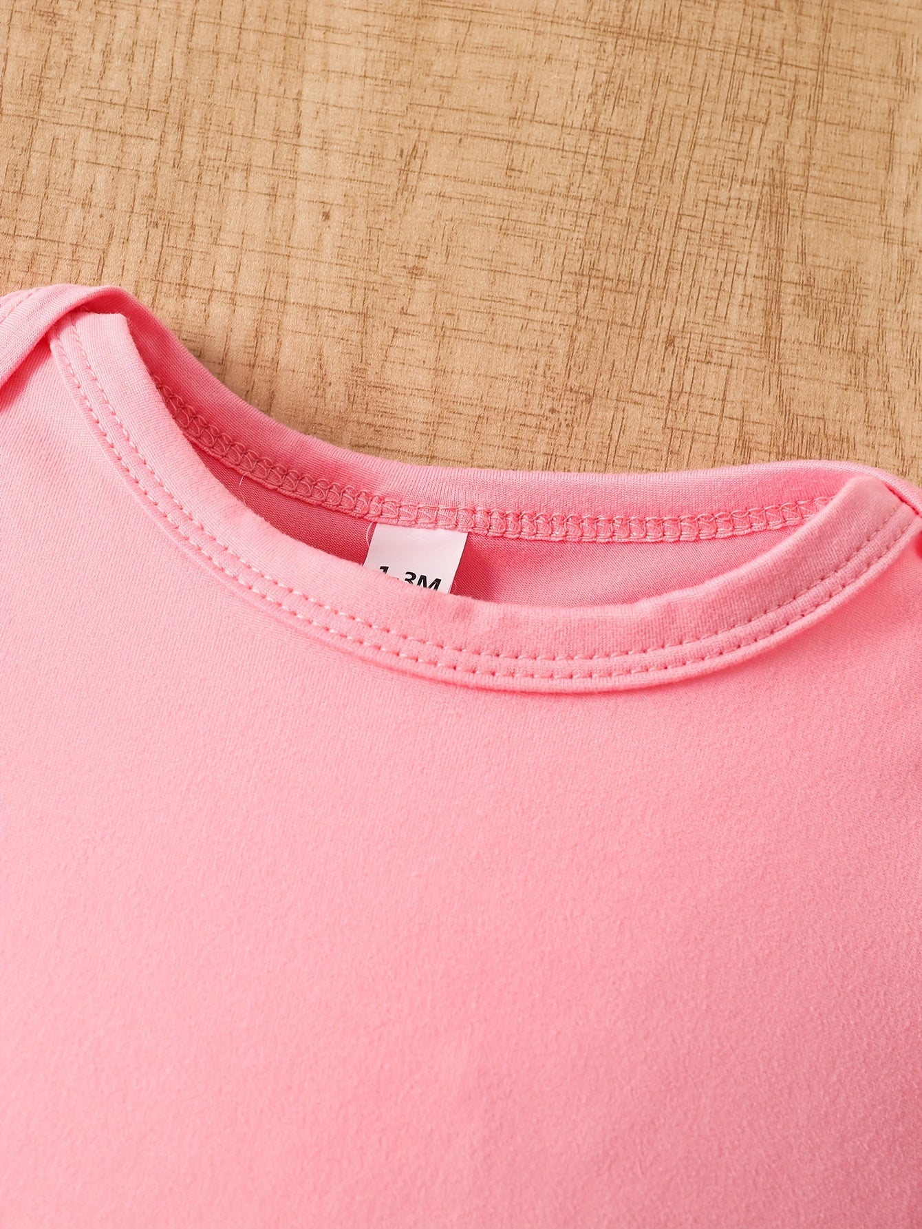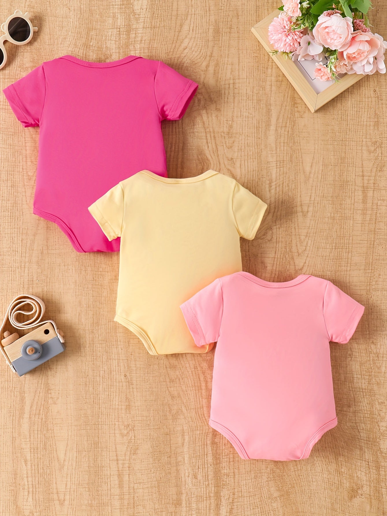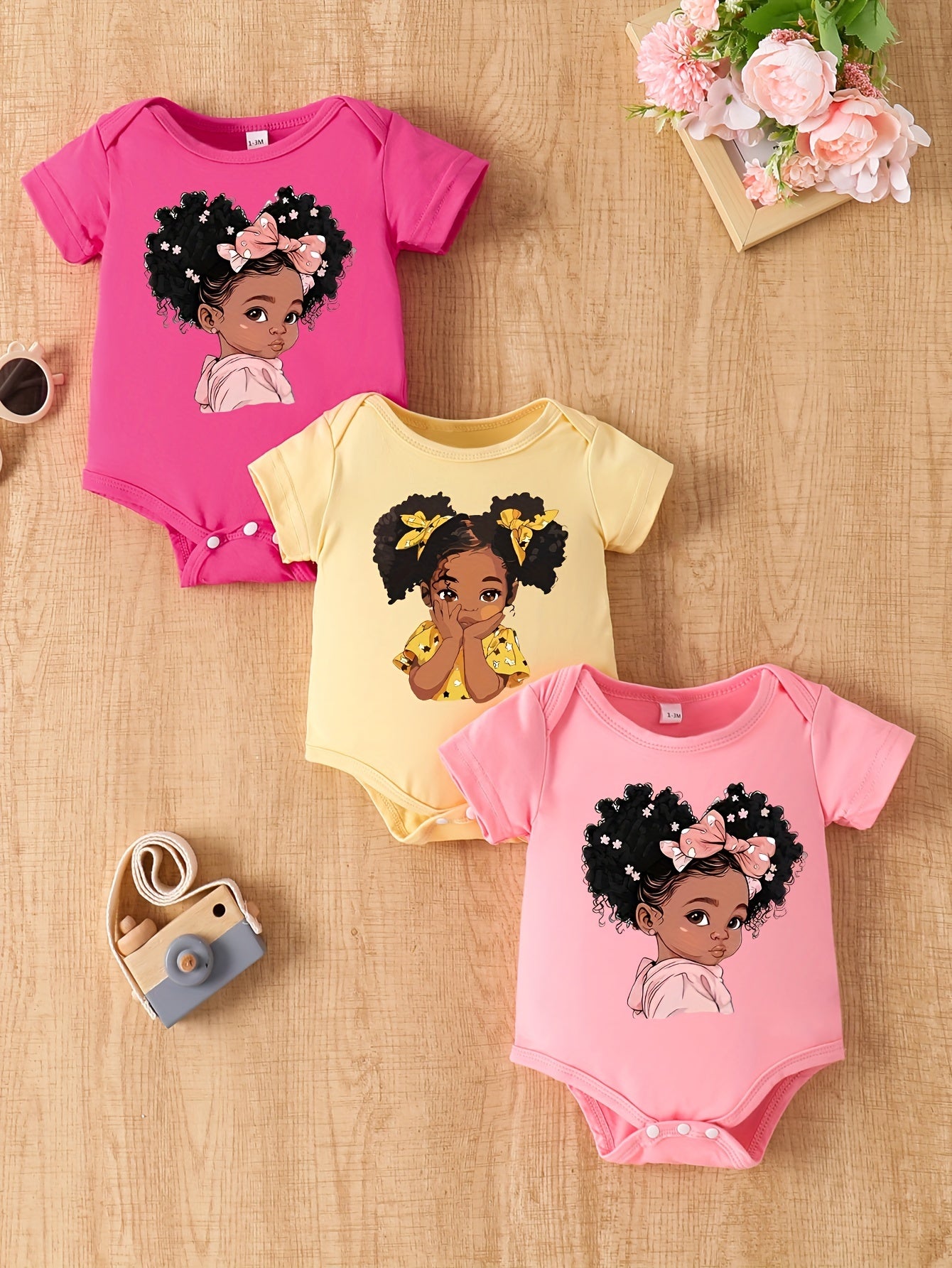 3pcs Baby's Cartoon Girl Print Triangle Bodysuit, Casual Short Sleeve Romper, Toddler & Infant Girl's Outdoor Clothing For Summer, As Gift