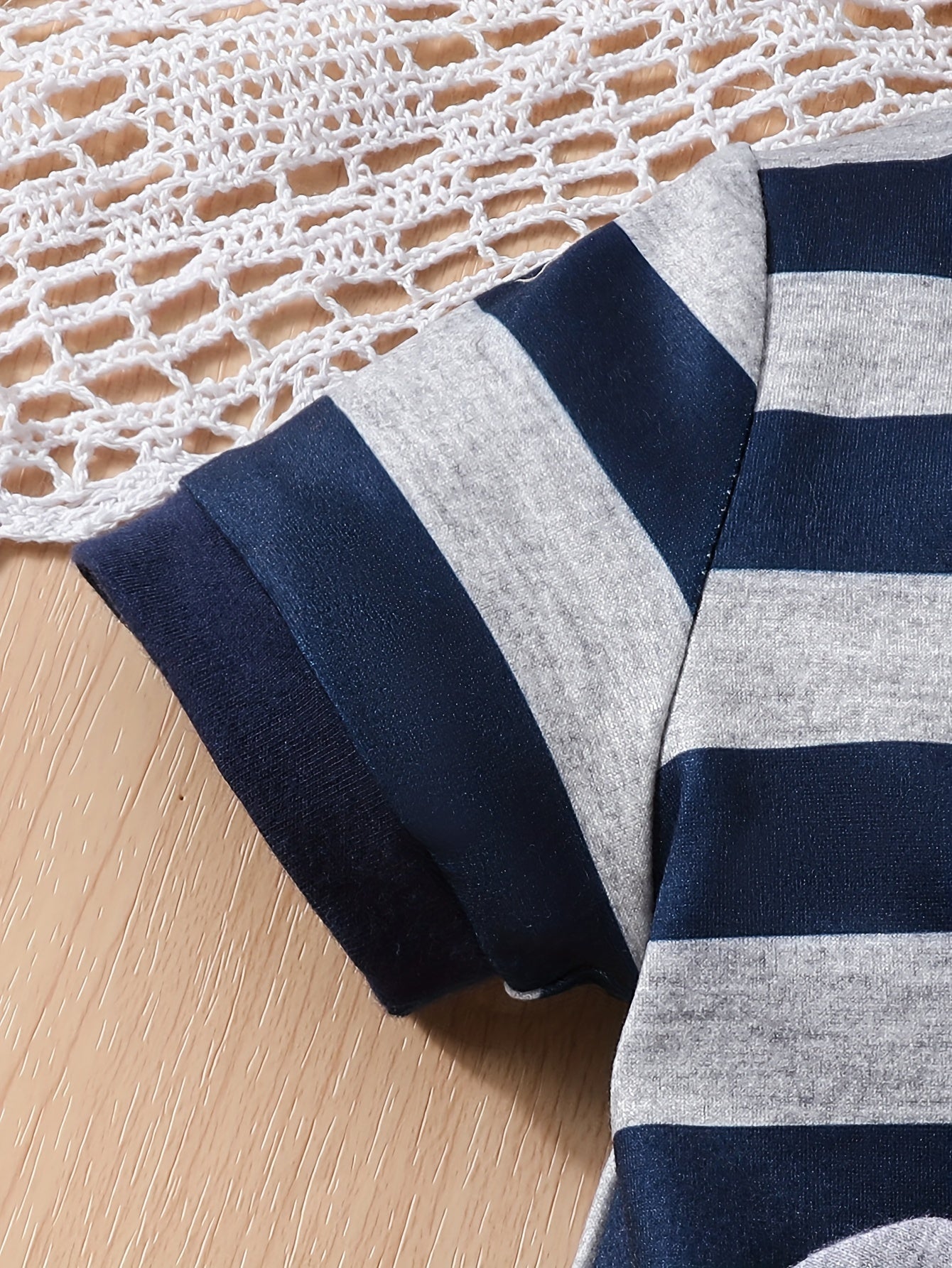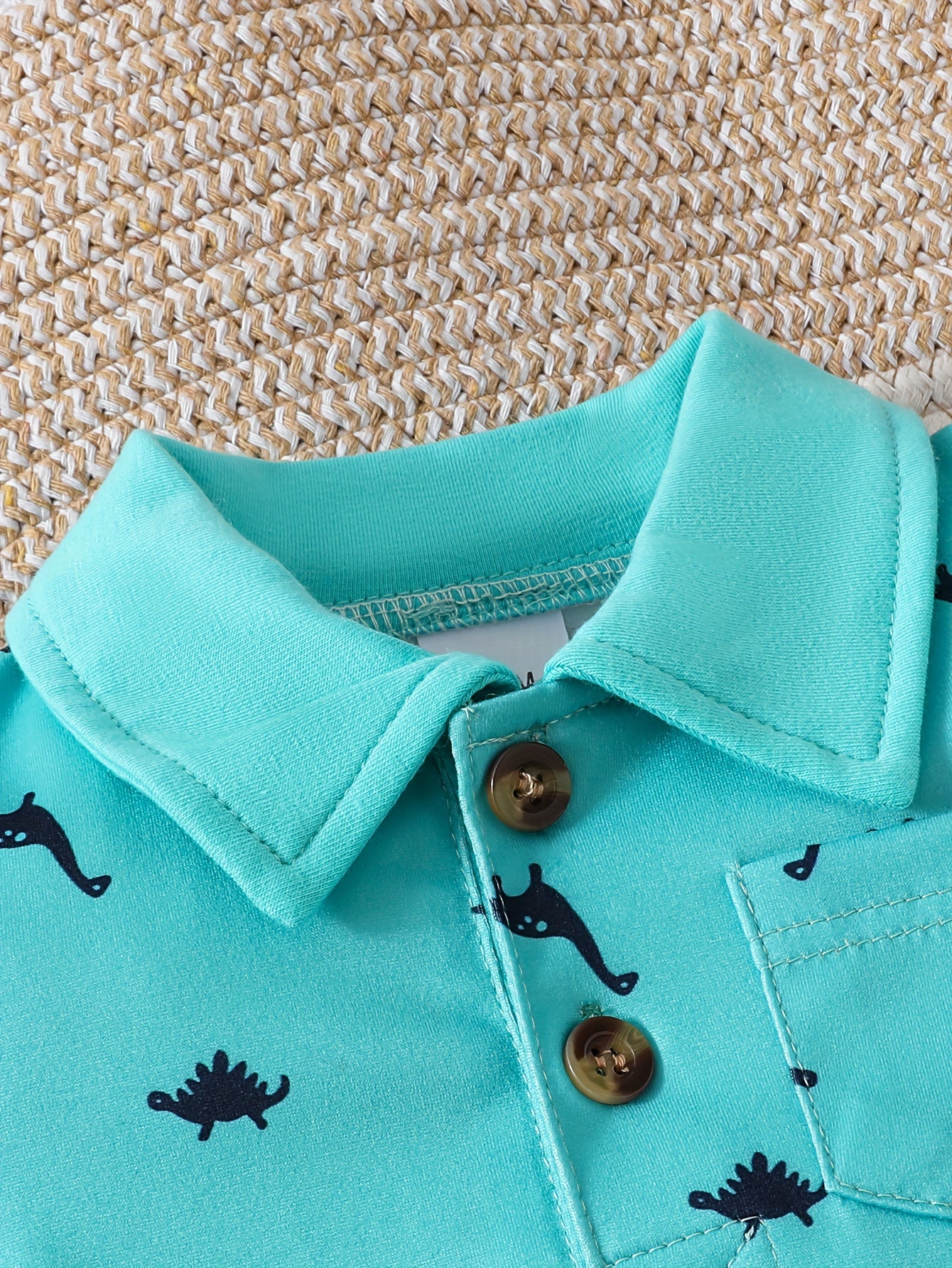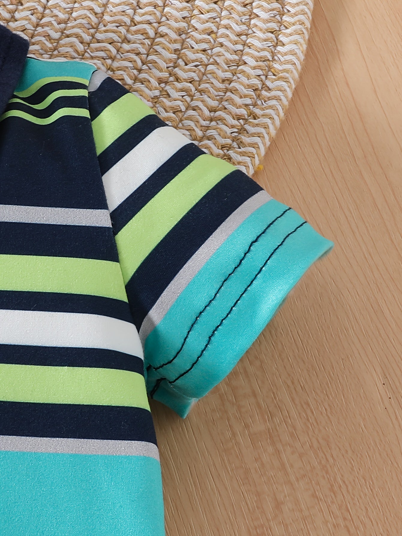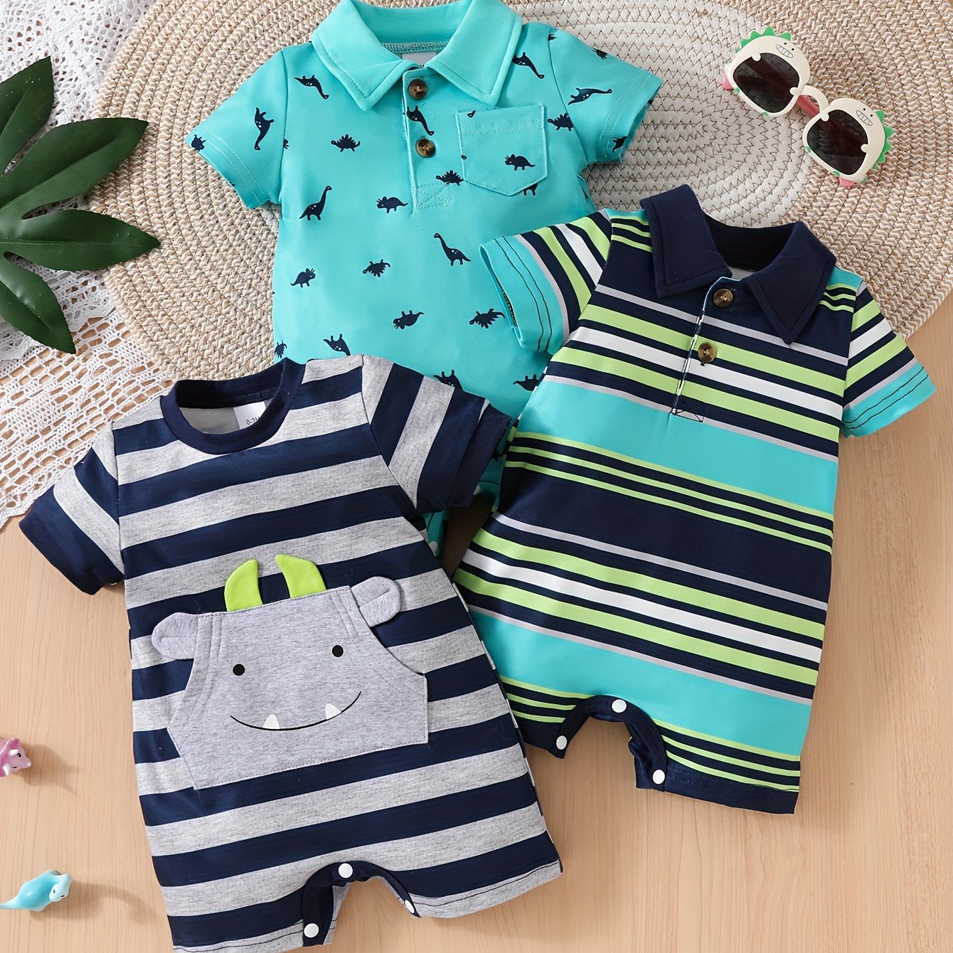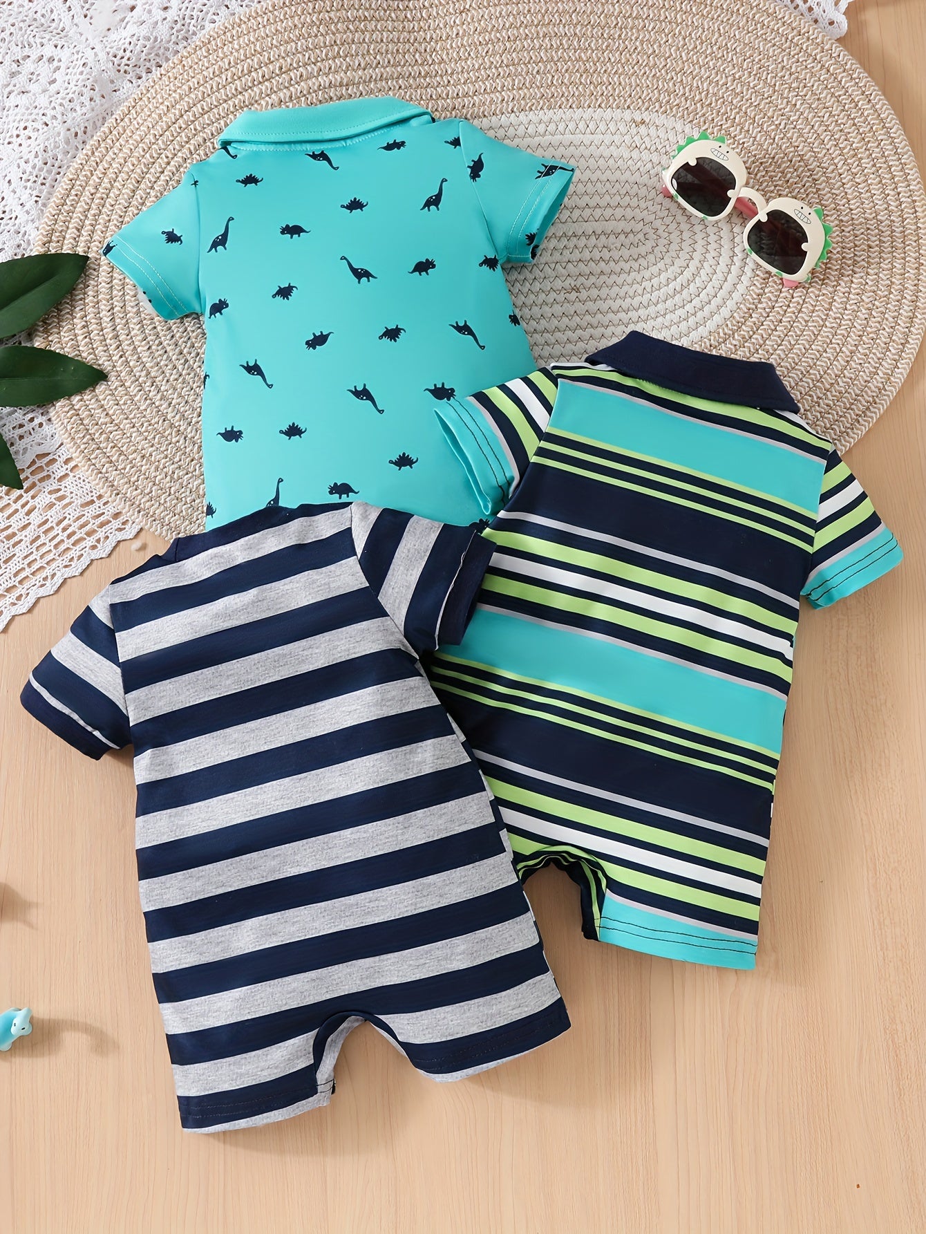3pcs Baby's Casual Short Sleeve Romper Set, Turndown Collar & Crew Neck Bodysuit, Toddler & Infant Boy's Summer Outdoor Clothing