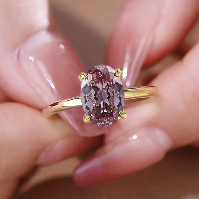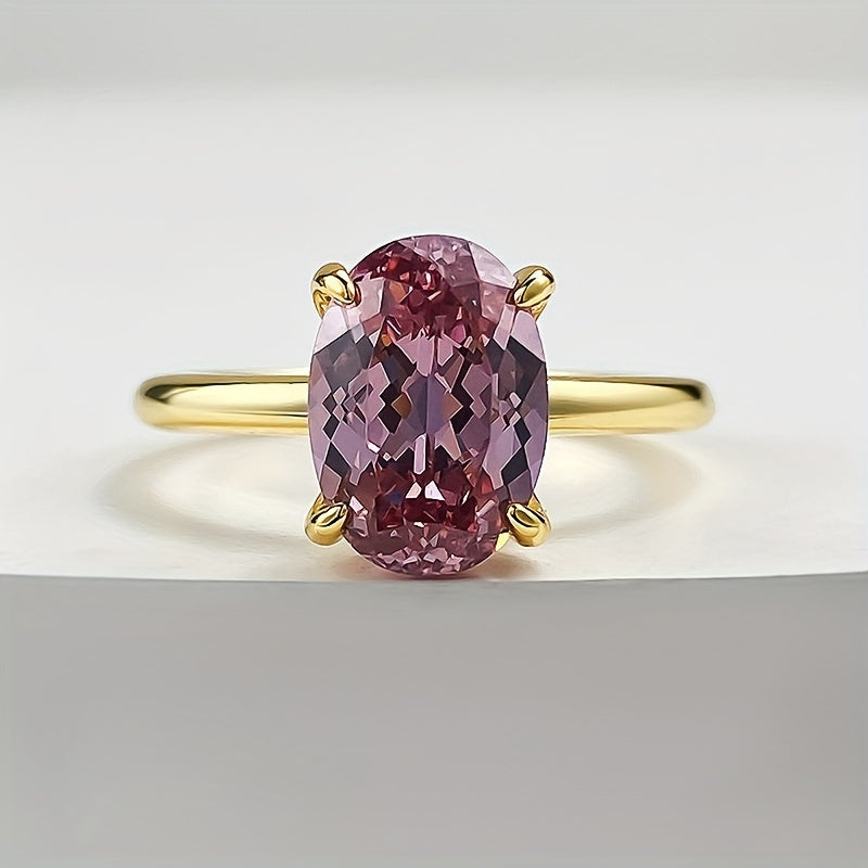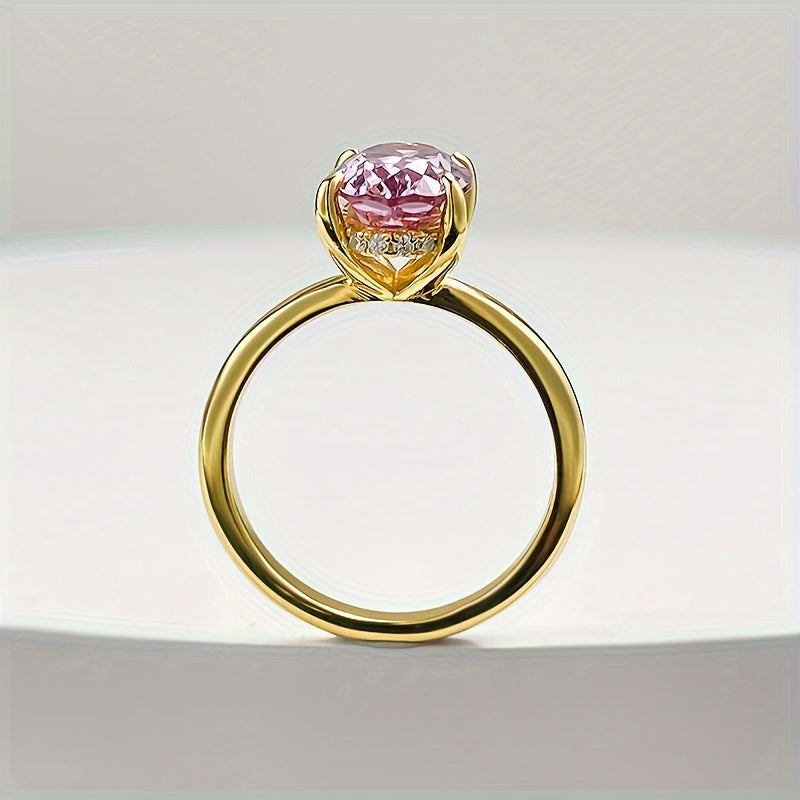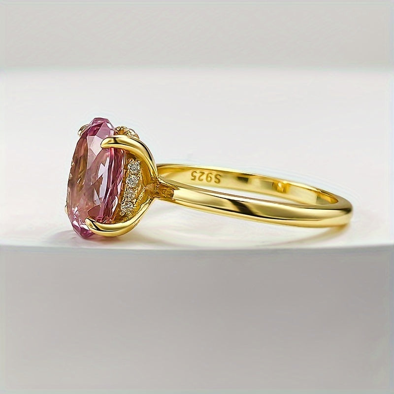 4 Carat Oval Pink Morganite Ring - S925 Sterling Silver with Golden-Tone Band, Synthetic Cubic Zirconia Accents - Elegant, Ideal for August Birthstone, Parties & Easter Celebrations, Peacock Egg