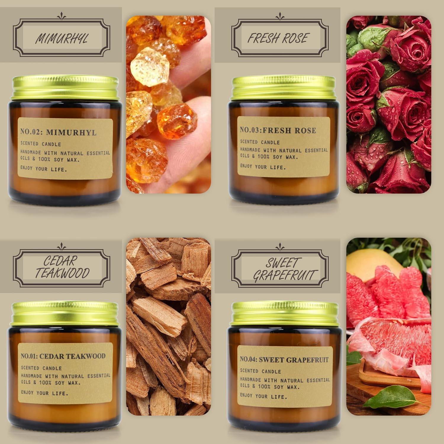 4 Pack Candles for Home Scented Candles Clearance, Aromatherapy Candle Gifts for Women, Natural Soy Wax Long Lasting Amber Jar Candles Set, Gifts for Birthday, Valentine's, Mother's, Anniversary