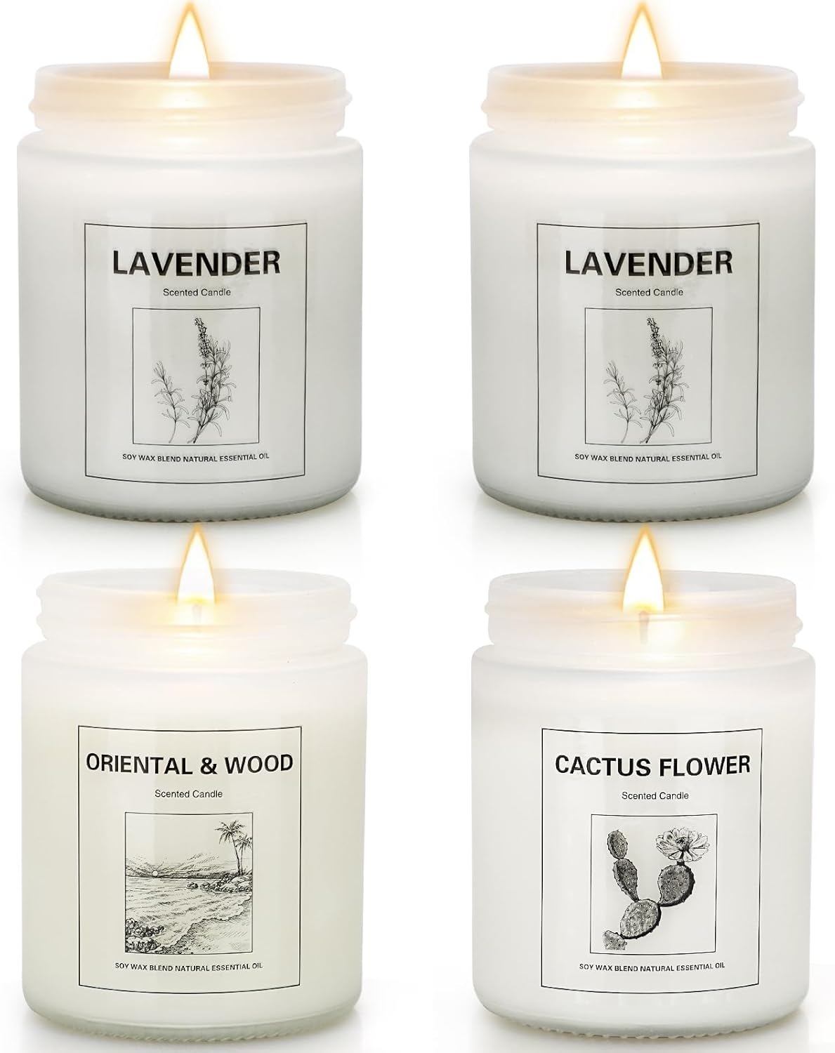 4 Pack Candles for Home Scented, Lavender Candle Set, Aromatherapy Jar Candle for Home, 28 oz 200 Hour Long Lasting, Natural Soy Wax Candles Gifts Set for Women, Birthday, Valentine, Anniversary
