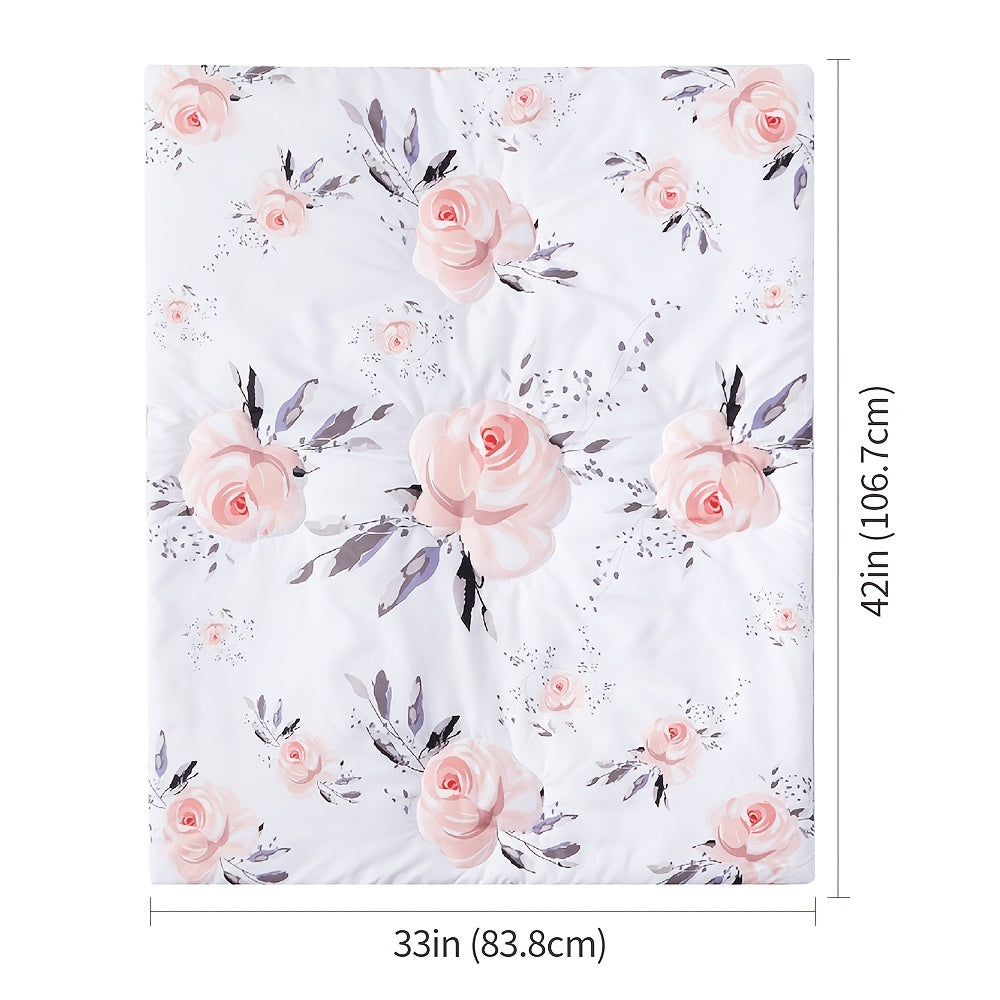 4pcs Crib Bedding Set for Boys Girls Including Blanket Crib Skirt Crib Sheets Diaper Stacker Pink Flower Soft Baby Bedding Set