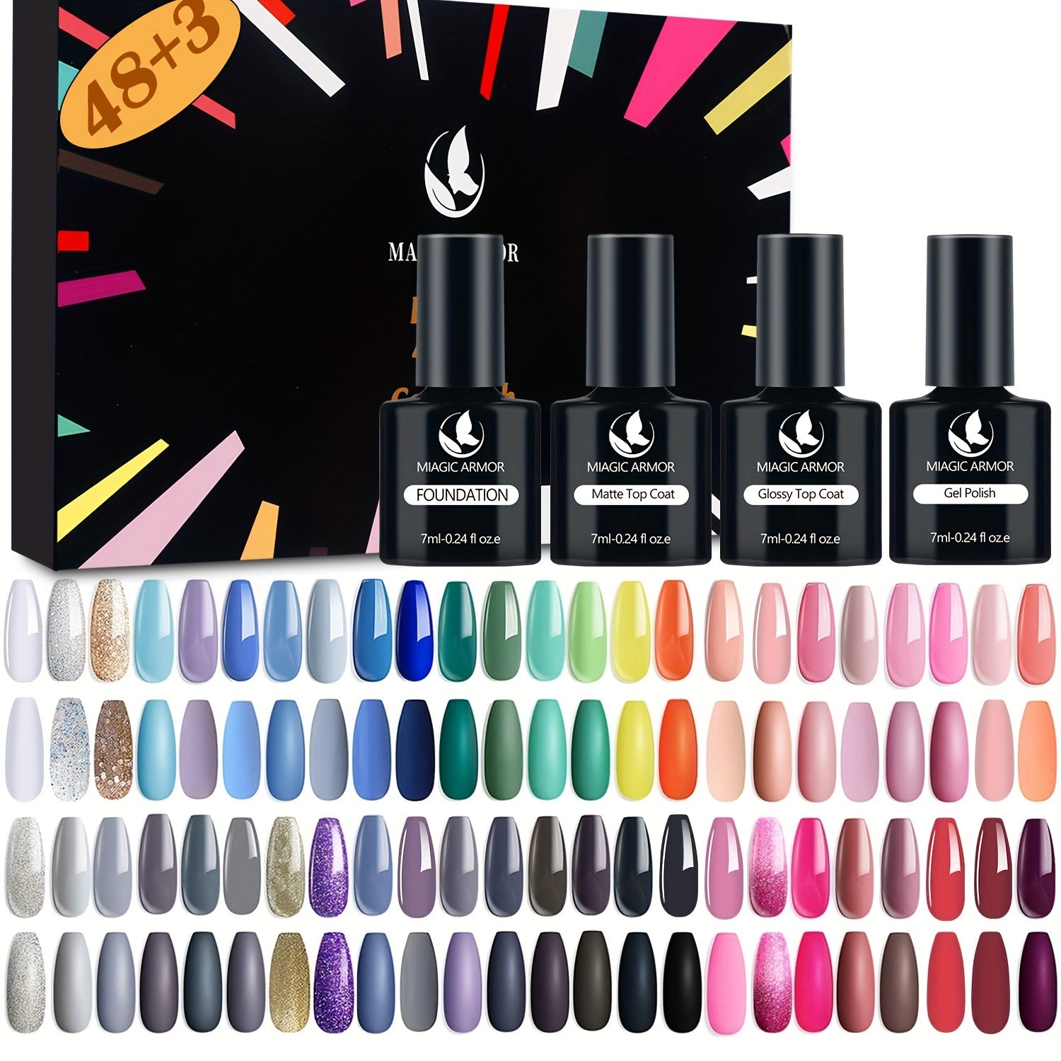 51Pcs Gel Nail Polish Kit, 48 Colors Popular Gel Nail Polish Soak Off UV Gel Nail Set with Glossy & Matte Matte Top Coat Base CoatGel Nail Kit Nail Art Starter Kit Beauty Gifts Set Box