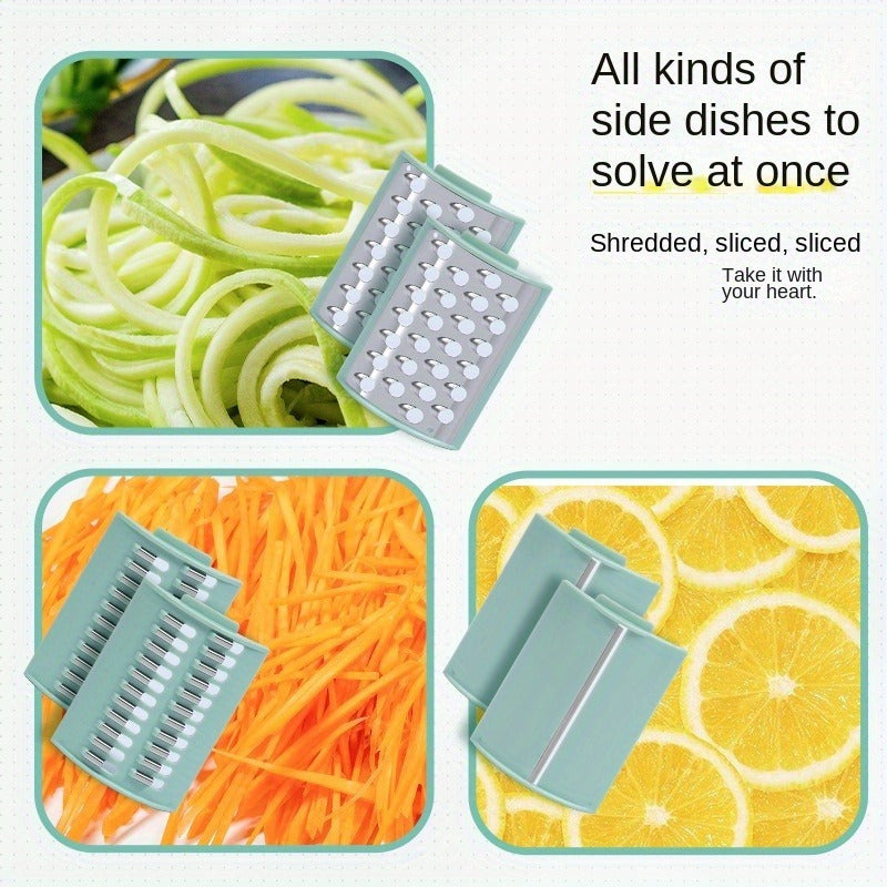 6-in-1 Handheld Kitchen Gadget Set: Stainless Steel Blades for Fruits, Vegetables, and Meats - Includes Potato, Garlic, and Onion Shredders, Non-stick Pans, Knives, and High-capacity Containers