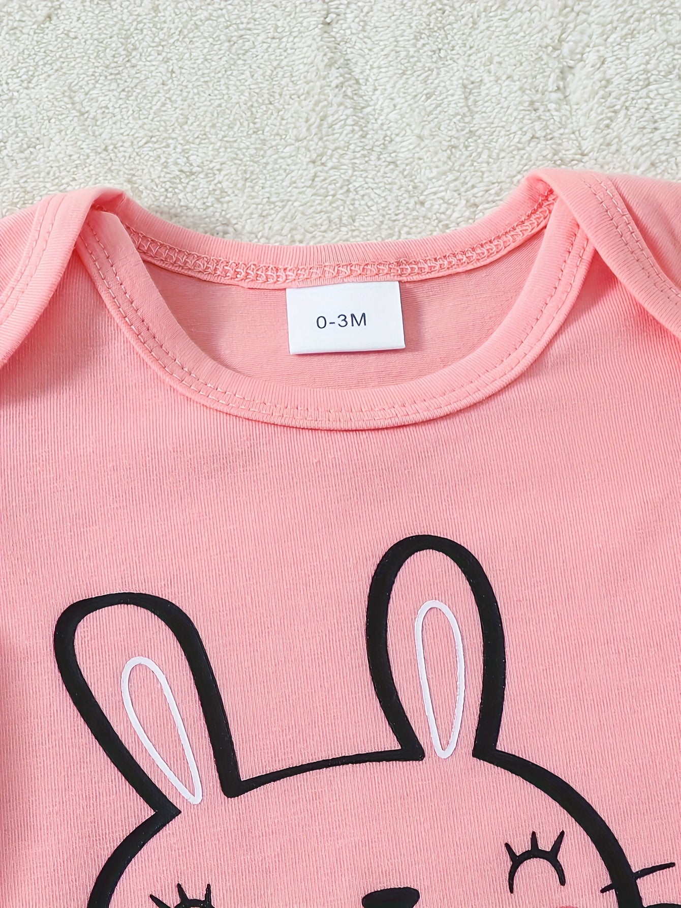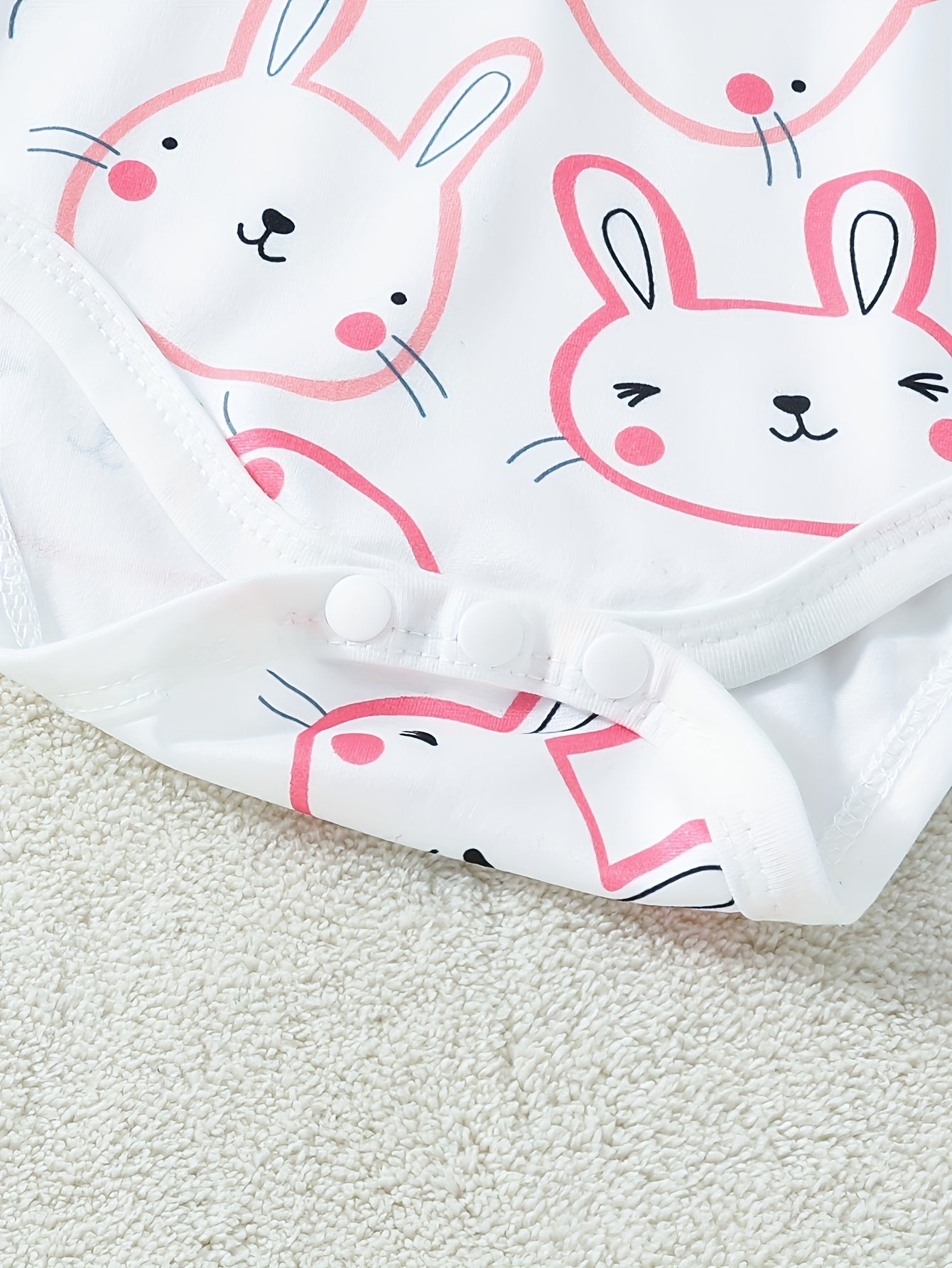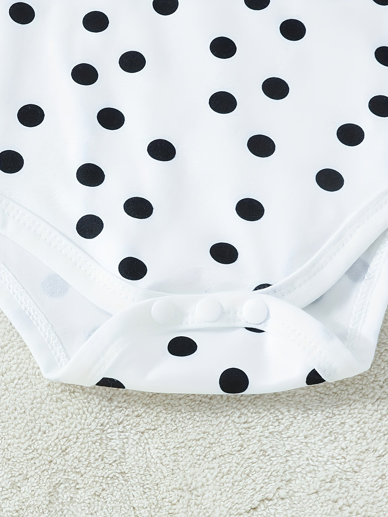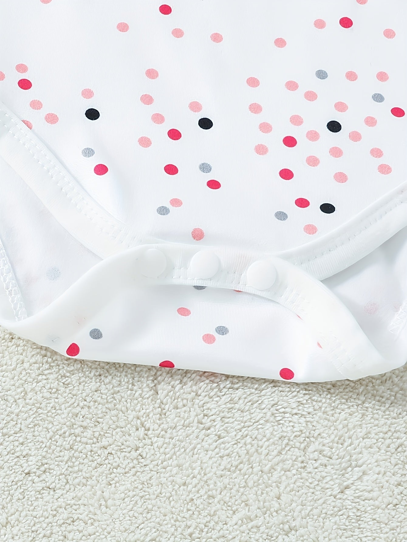 6pcs Adorable Bunny & Polka Dot Youngsters Bodysuits - Soft Polyester Short Sleeve Rompers, Machine Washable, All-Season Comfort for Youngsters (White, Pink, Black), Perfect for Outdoor