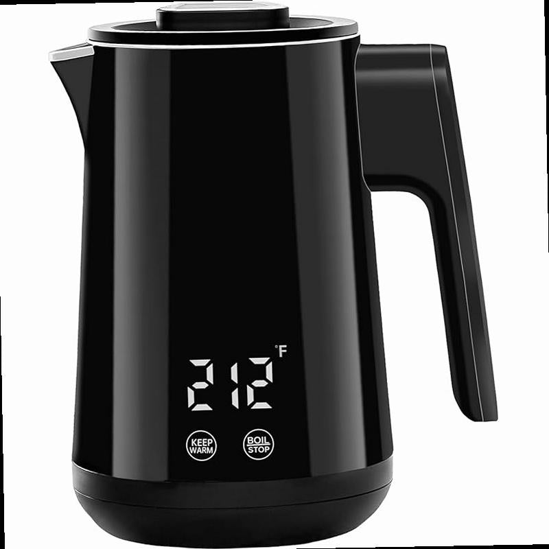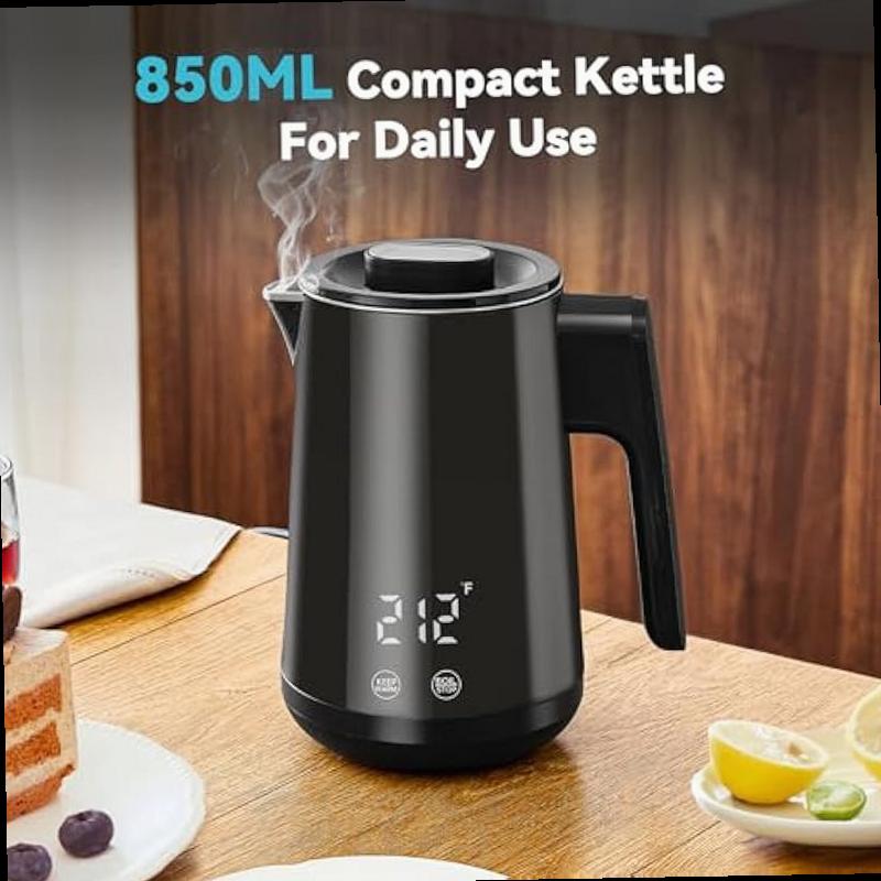 850ml Small Electric Kettle Temperature Control 800W Double Wall Electric Tea Kettle of 304 Stainless Steel 5 Temp Presets Hot Water Kettle Electric Auto Shut Off for Tea and Coffee Black