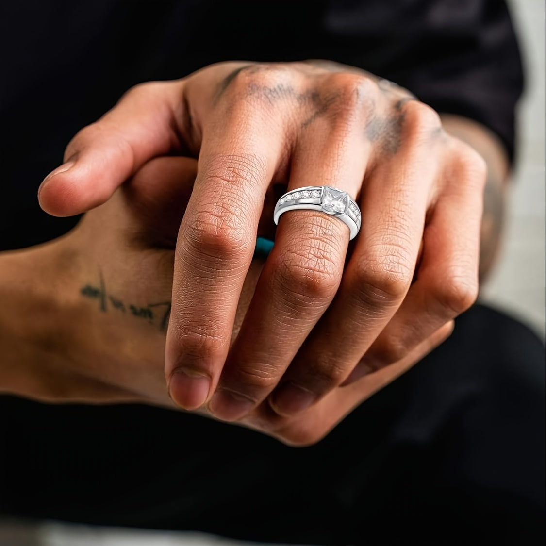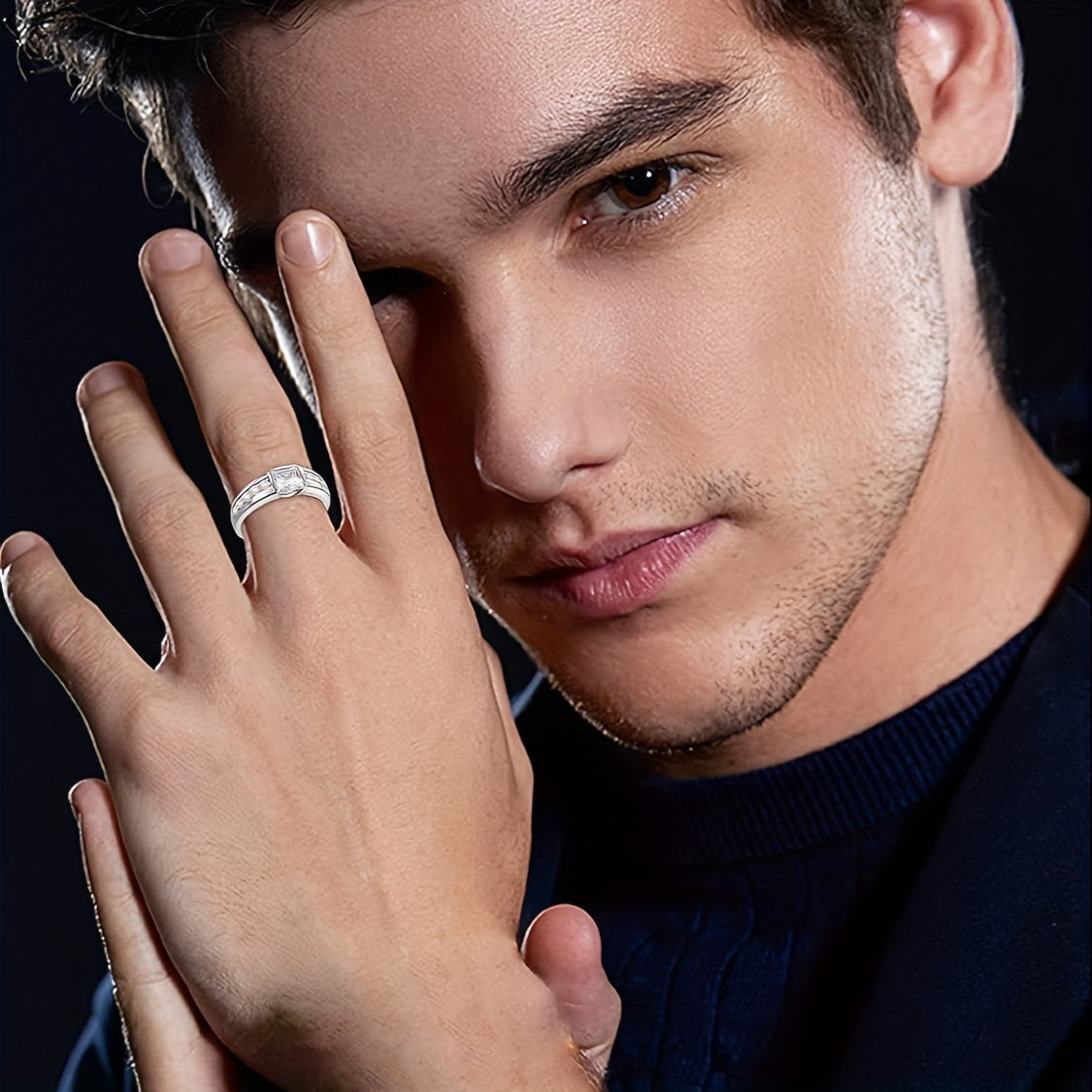 925 Sterling Silvery Men's/Women's Moissanite 1ct Engagement Ring White Golden