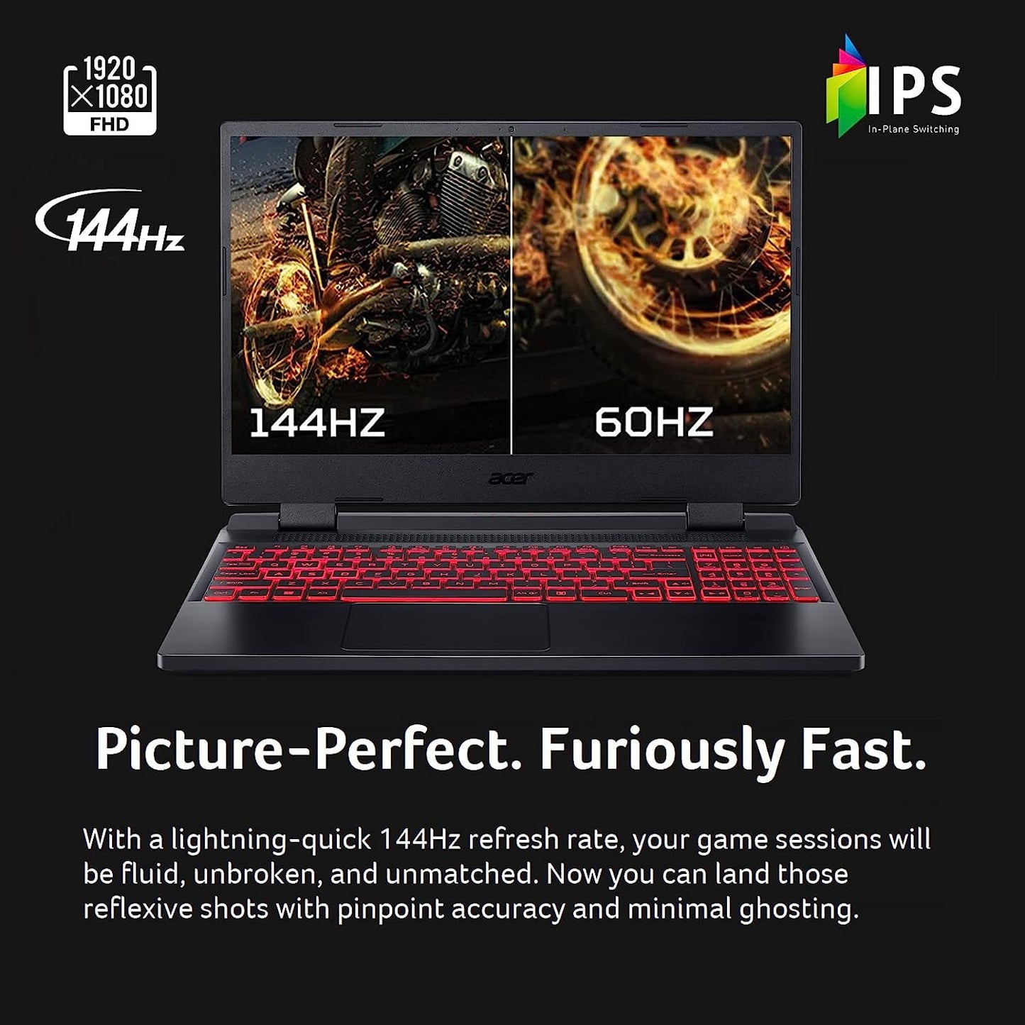 - Picture-Perfect. Furiously Fast: With the sharp visuals of a 15.6” Full HD IPS display with a lightning-quick 144Hz refresh rate, your game sessions will be fluid, unbroken, and unmatched.