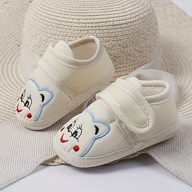 Adorable Cartoon-Faced Baby Walking Shoes for Boys & Girls - Light Blue, Soft Fabric, Non-Slip Sole with Easy Hook-and-loop Fastener Closure - Perfect for First Steps, All Seasons, Toddler Shoes