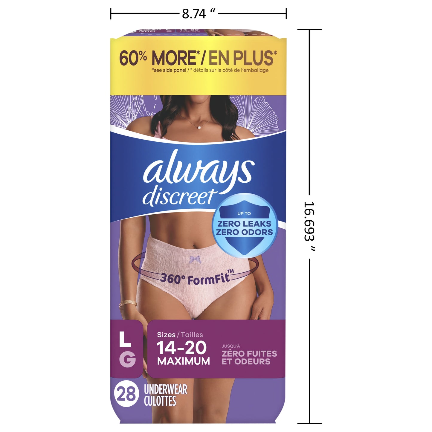 - Always Discreet Adult Incontinence Underwear for Women, L 28 CT