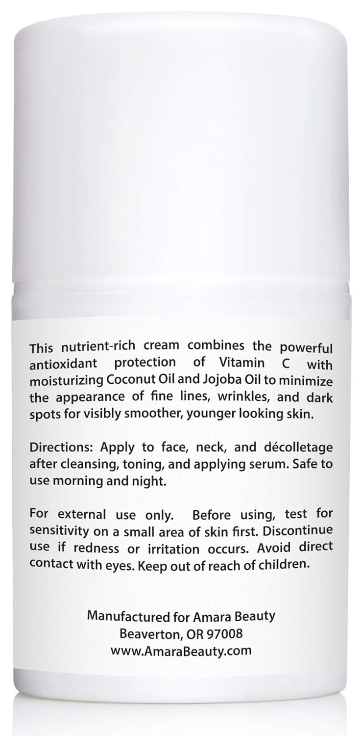 Amara Beauty Vitamin C Cream for Face with Coconut Oil, Cocoa Butter & Jojoba Oil, 1.7 fl. oz.