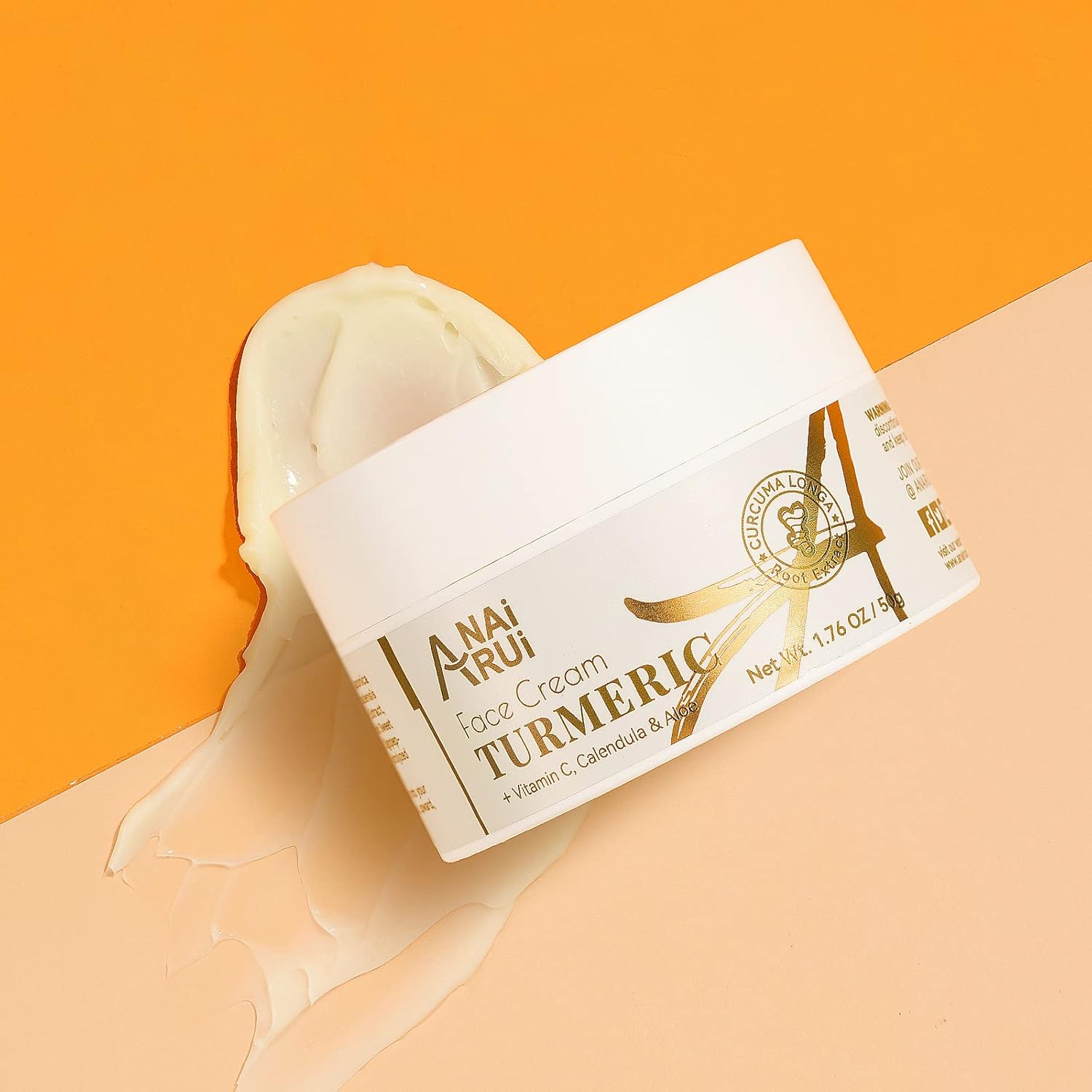 ANAI RUI Facial Moisturuzier, Turmeric Face Cream with Vitamin C for Hydrating, Firming, Tightening Skin, Turmeric Vitamin C Cream for Dark Spots, Dry Skin, 1.76 OZ