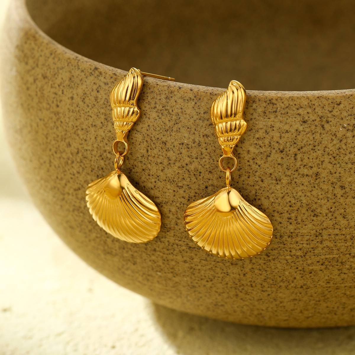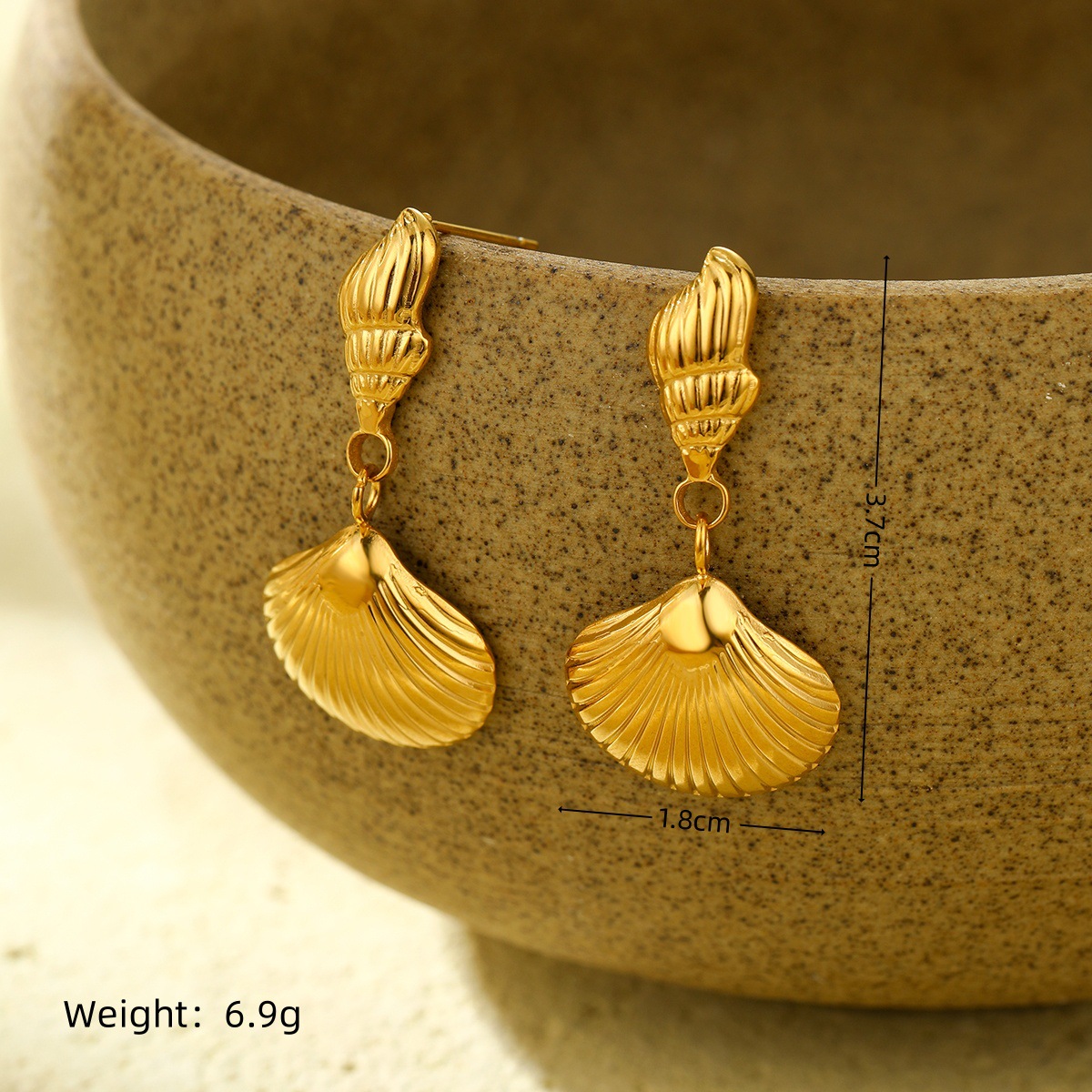 Arrival Ocean Conch Scallop Titanium Steel Earrings Summer Simple Light Luxury High Grade Earrings for Women