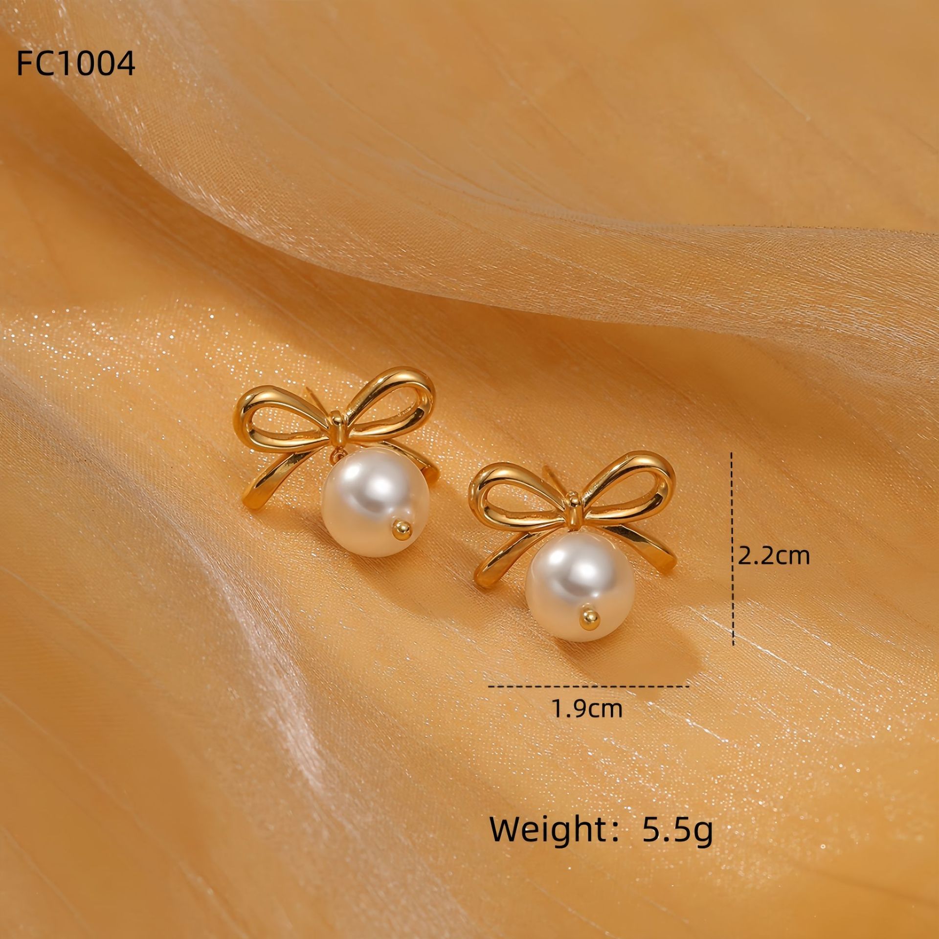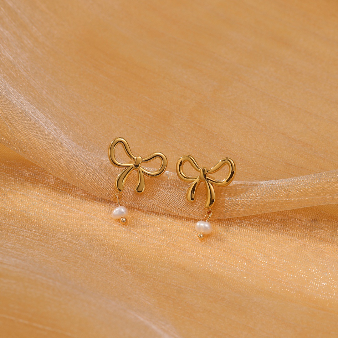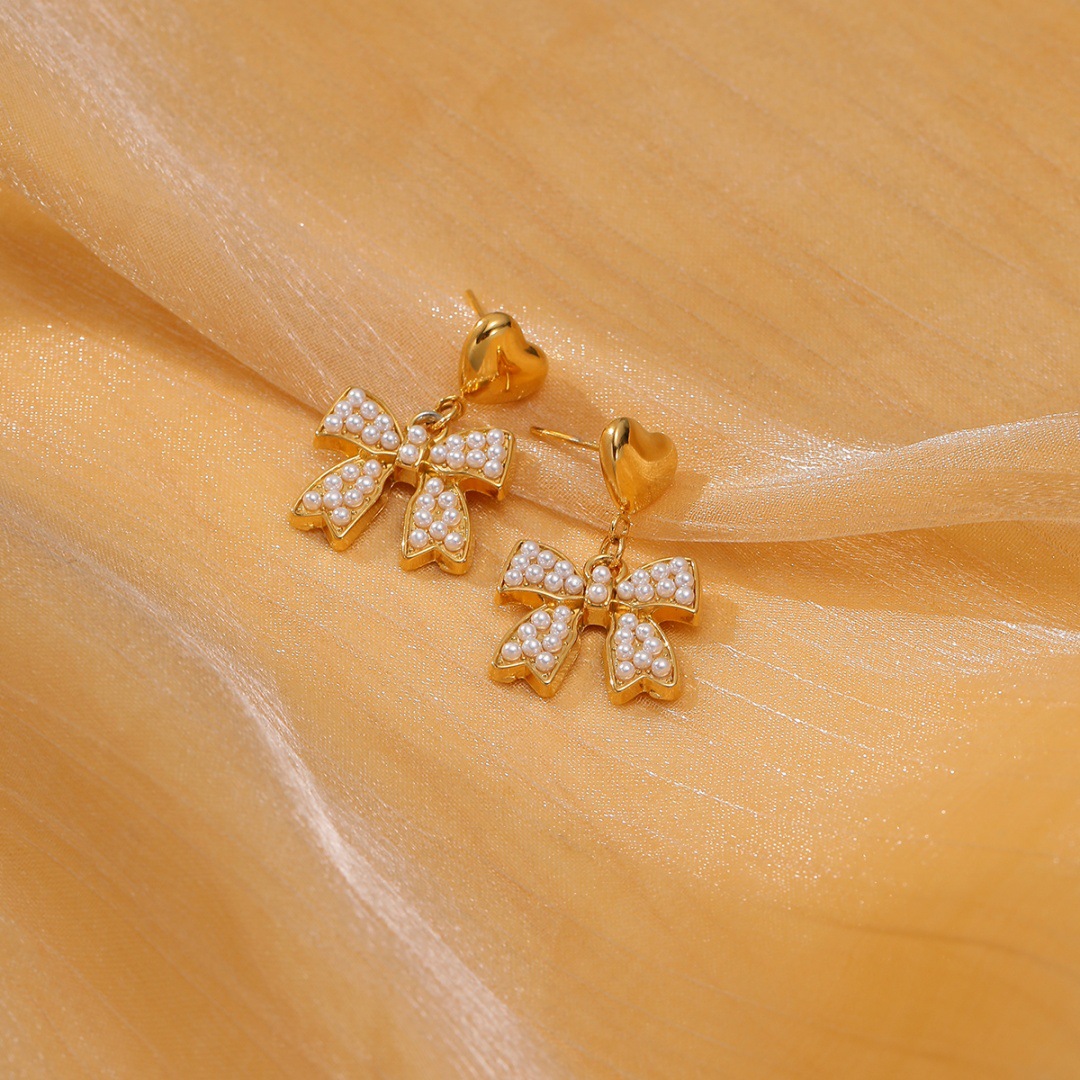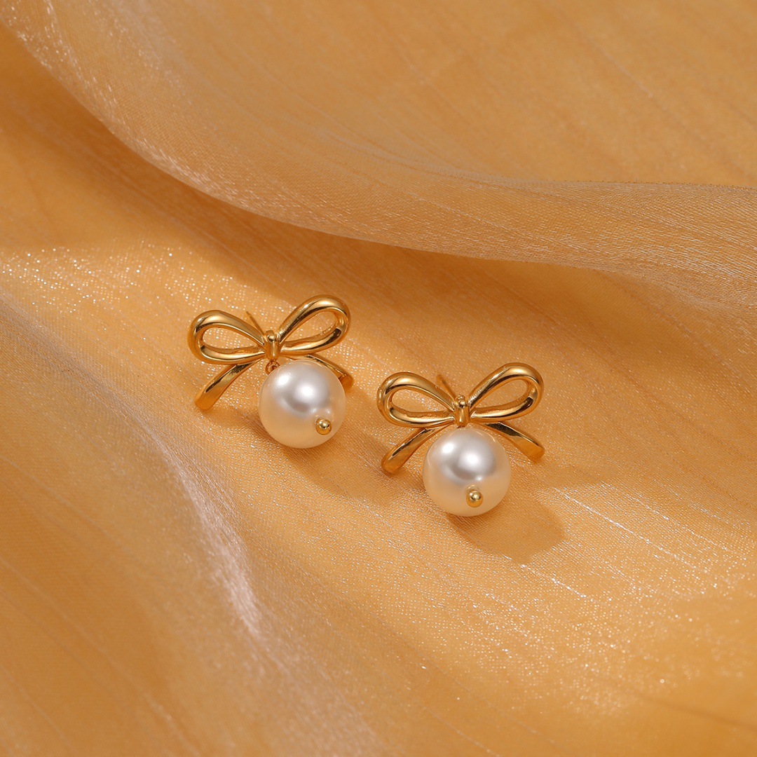 Arrival Pearl Bow Titanium Steel Earrings Arrival Simple High-Grade Love Heart Stud Earrings Earrings