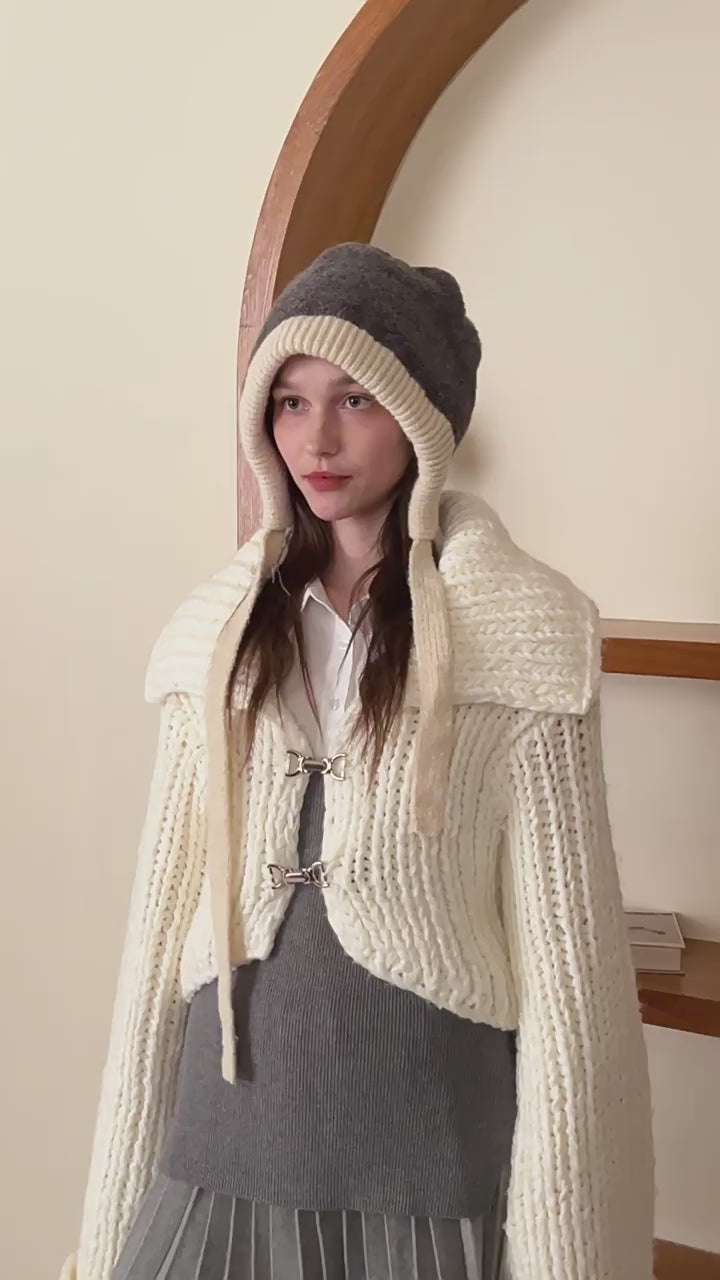 Autumn Winter Korean Sense of Atmosphere Earflaps Woolen Hat Toque Niche Warm All Matching Soft Glutinous Winter Knitting Drawstring Hat