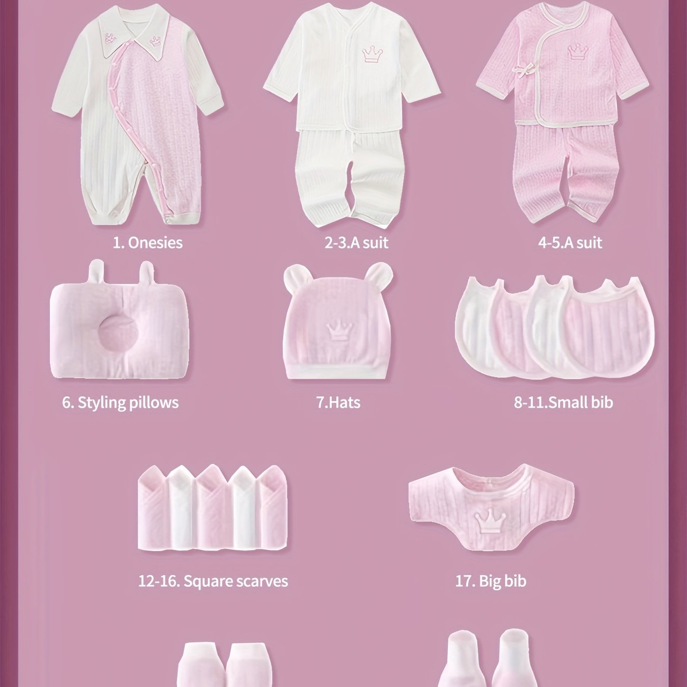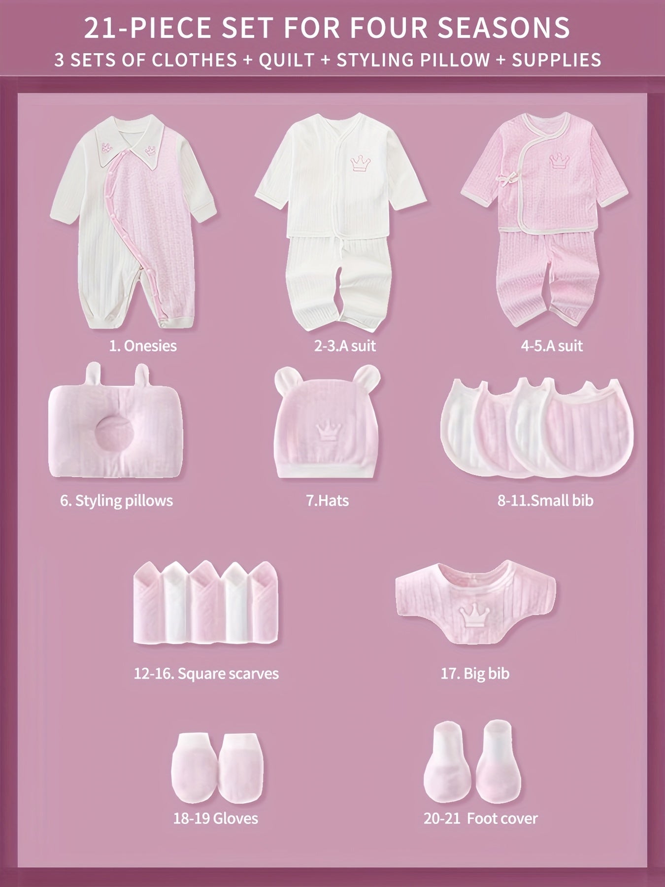 Baby Girl Clothes + Newborn Daily Necessities Complete Set, 3 Sets Of Clothes + Hat + Bib + Pillow + Hand And Foot Covers + Bibs, Baby Full Moon Spring, Autumn, And Winter Long Sleeve Suit, Jumpsuit, Local Warehouse, Baby Shower Gifts, for Outdoor