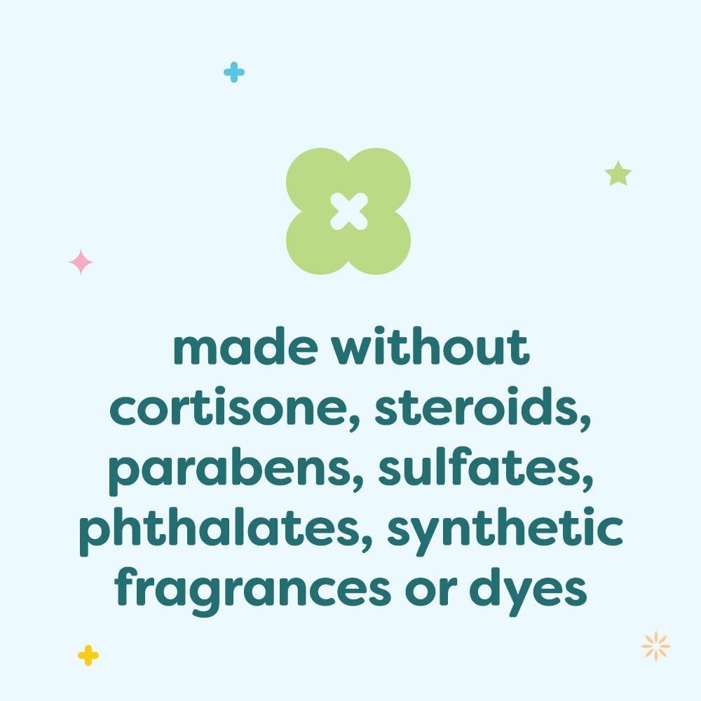 No: Cortisone, Steroids, Parabens, Sulfates, Phthalates, artificial fragrances or dyes