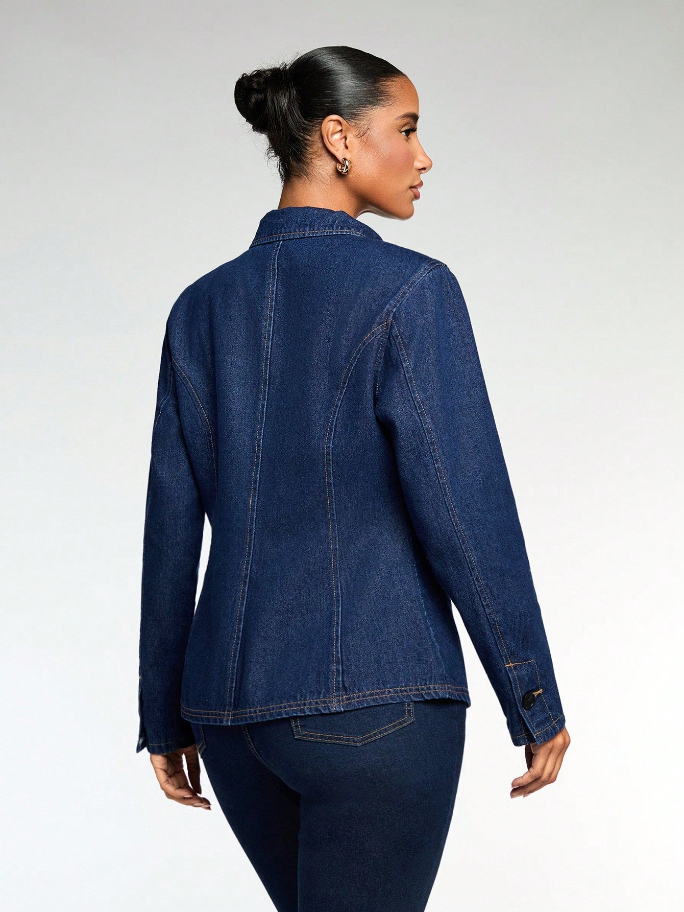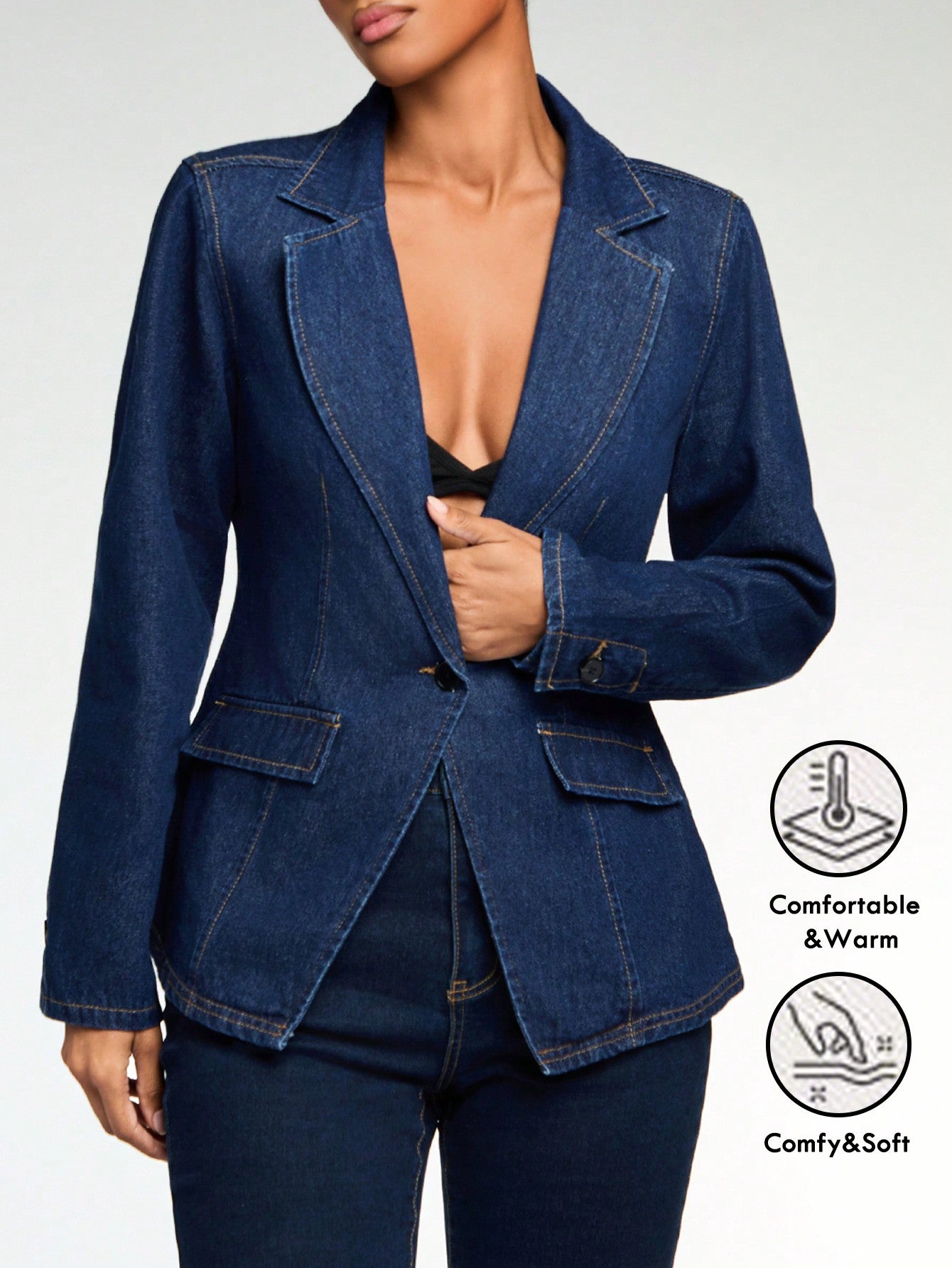 BAE 1pc Women Denim Jacket Fitted Long Sleeve Blazer Outerwear, Blue Blazer, Official Business Blazer,Winter Women Jackets,Women Blazers,Winter Women Outfits