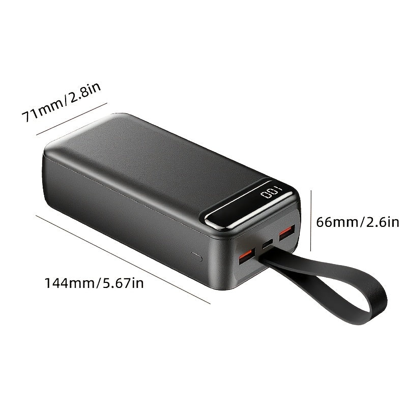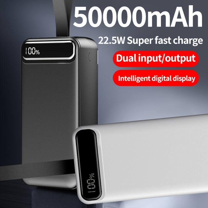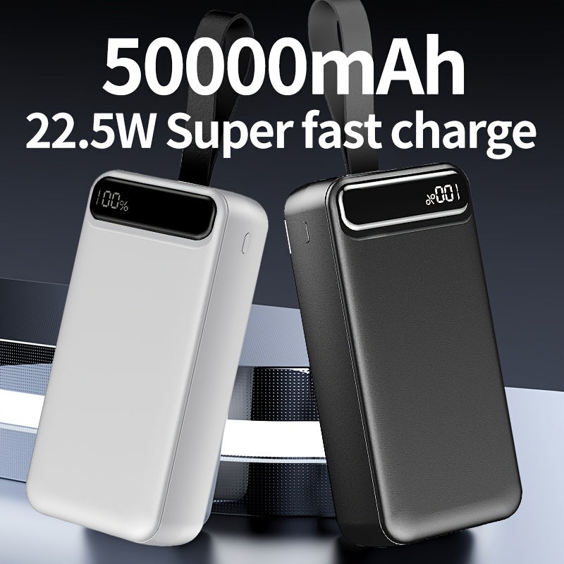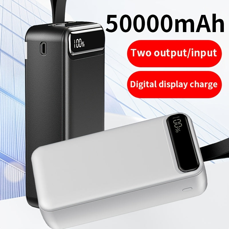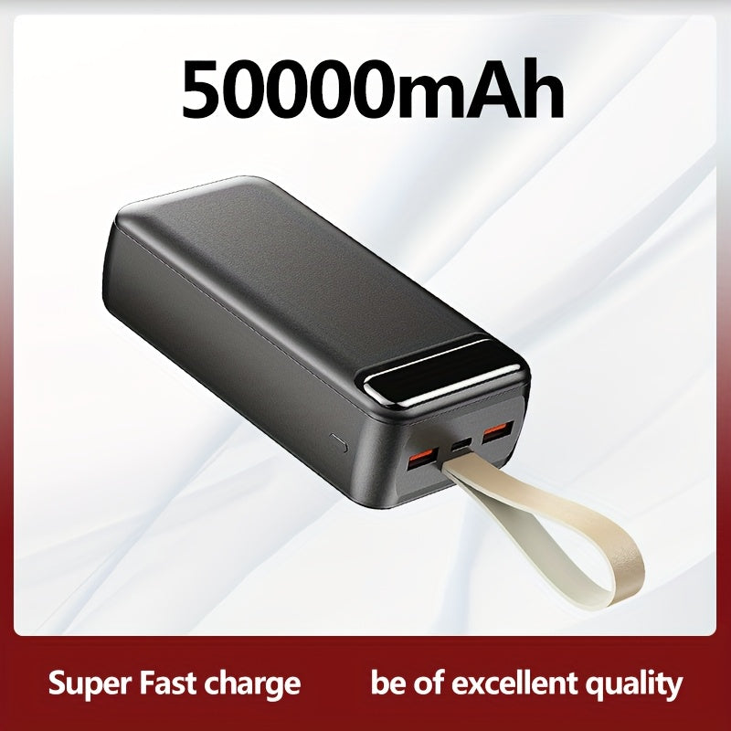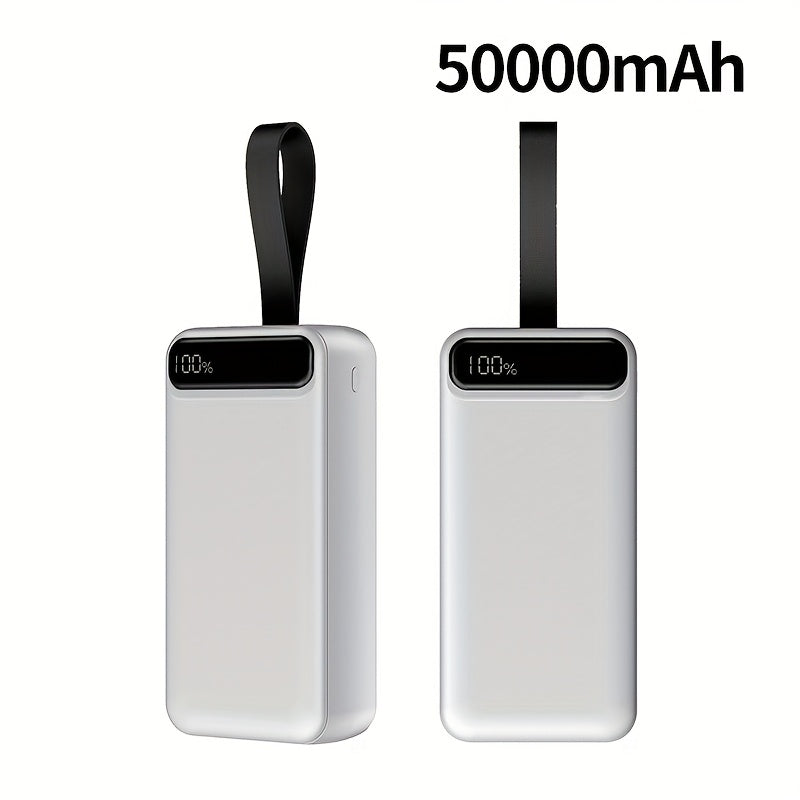 Batterie externe portable de grande capacité 50000mAh, équipée d'une affichage de l'alimentation LED/une corde, adaptée au chargement des téléphones mobiles/les appareils électroniques Android, un dispositif d'alimentation d'urgence extensible pour l'exté